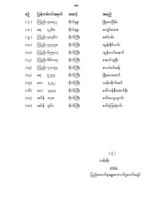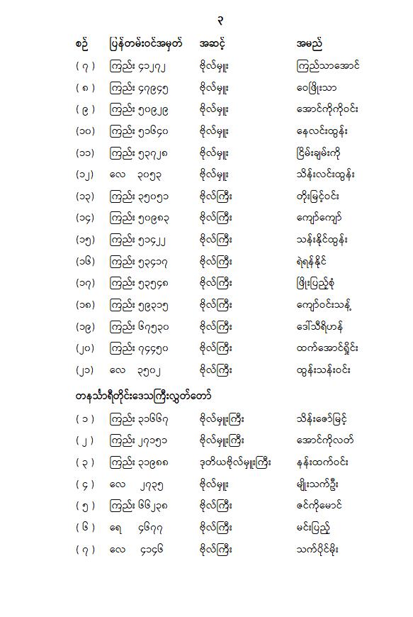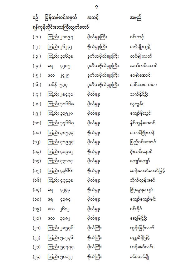 တပ်မတော်သား တိုင်းဒေသကြီးလွှတ်တော် သို့မဟုတ် ပြည်နယ်လွှတ်တော် ကိုယ်စားလှယ်အမည်စာရင်းကြေညာခြင်း 03/08/2026