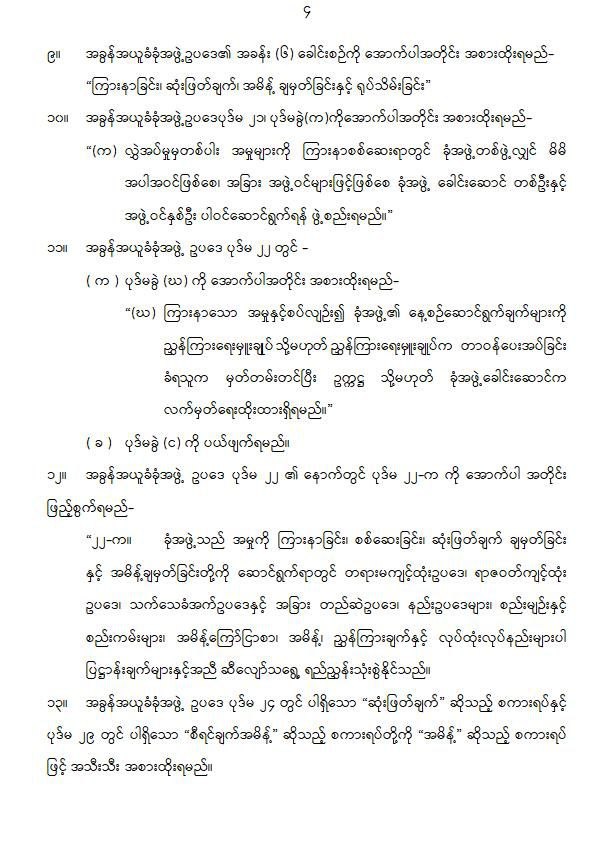ဝန်ကြီးဌာန ကြေညာချက်များ