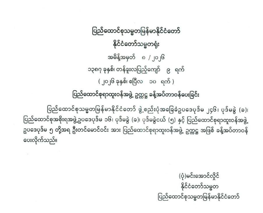 နိုင်ငံတော်အစိုးရ၏ ကြေညာချက်များ