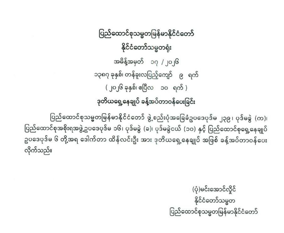 ဒုတိယရှေ့နေချုပ် ခန့်အပ်တာဝန်ပေးခြင်း