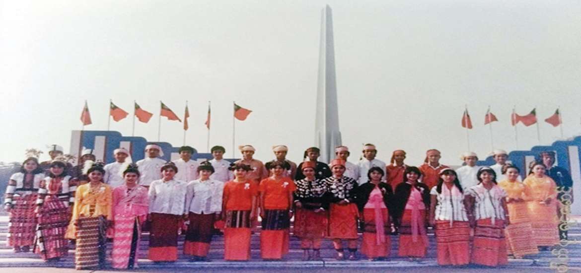 အဆိုပါ တိုင်းရင်းသားလူမျိုးများ စာပေ နှင့် ယဉ်ကျေးမှုဗဟိုကော်မတီ (တက္ကသိုလ် များ-ရန်ကုန်)သည် တစ်ခုသော ပြည်ထောင်စု နေ့ ပဒေသာကပွဲကျင်းပရာ၌ အဖွင့်သီချင်း အဖြစ် အဆိုတော်ကြီး ဒေါ်မာမာအေး၏ “ဒို့ပြည်ထောင်စုသား” သီချင်းနှင့် အပိတ် သီချင်းအဖြစ် အဆိုတော် ရုပ်ရှင်မင်းသားကြီး ဦးမြတ်လေး၏ “ ပန်းတိုင်းပွင့်ပါစေ” သီချင်း များကို သက်ဆိုင်ရာတိုင်းရင်းသား ကျောင်းသား ကျောင်းသူ လူမျိုးအလိုက် အမျိုးသားတစ်ဦး၊ အမျိုးသမီးတစ်ဦးစီဖြင့် ဖျော်ဖြေတင်ဆက်ခဲ့ရ သည်။ ထိုသို့ တင်ဆက်နိုင်ရန် ဦးမြသန်း (ကွယ်လွန်)ဒုတိယညွှန်ကြားရေးမှူး (အငြိမ်း စား)၊ အမျိုးသားမှတ်တမ်းများ မော်ကွန်း တိုက်၊ (ရန်ကုန်တက္ကသိုလ်၊ သင်္ချာဌာန၊ ပါမောက္ခဆရာကြီး ဦးအောင်လှ (ကွယ်လွန်)နှင့် ရုပ်ရှင်မင်းသမီးကြီး အေဝမ်းမေသန်း (ဒေါ်မေသန်း) (ကွယ်လွန်)တို့၏ သားကြီး ဖြစ်သူ)က စန္ဒရားဖြင့် အချိန်တစ်လခန့် ညစဉ်ညတိုင်း အဆိုပါ သီချင်း သီဆိုမည့် တိုင်းရင်းသား ကျောင်းသား ကျောင်းသူများကို သီချင်းတိုက်ပေးခဲ့ရသည်မှာ ဘဝတာခရီးလမ်း တွင် အဆိုပါ ကျောင်းသား ကျောင်းသူများနှင့် အတူ အမှတ်တရဖြစ်စေခဲ့ပါသည်။ သို့ရာတွင် တိုင်းရင်းသားလူမျိုးများ စာပေနှင့် ယဉ်ကျေးမှု ဗဟိုကော်မတီ(တက္ကသိုလ်များ- ရန်ကုန်)သည် ၁၉၉၇ ခုနှစ် နှောင်းပိုင်းကာလ၌ အကြောင်း ကြောင်းကြောင့် ရပ်နားသွားခဲ့ရပေသည်။