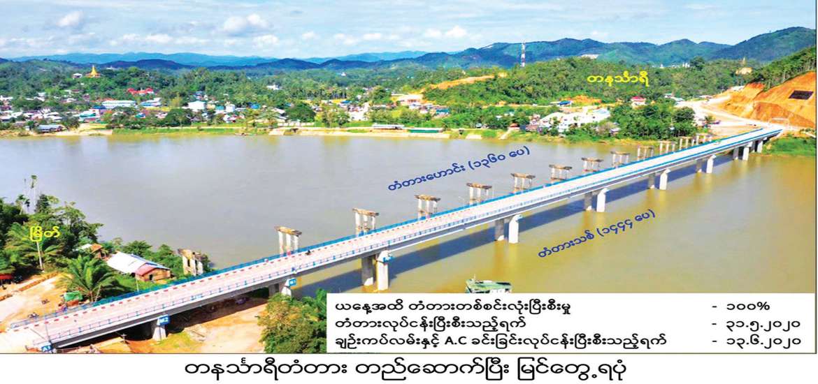 တနင်္သာရီတိုင်းဒေသကြီးအတွင်း လမ်းပန်းဆက်သွယ်ရေး ဖွံ့ဖြိုးတိုးတက်လာစေမည့် အသစ်တည်ဆောက်ပြီးစီးသော သမုတ်လွတ်လွတ်တံတား၊ တနင်္သာရီတံတားနှင့် ပုလုံးတုံးတုံးတံတား