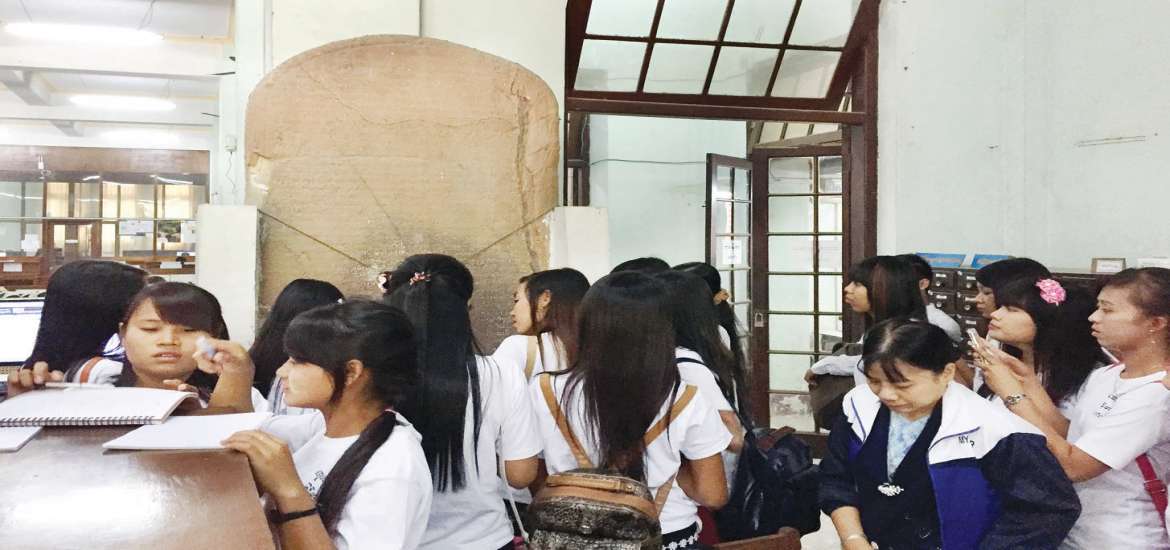 ပညာရပ်နယ်ပယ်မှာ မူလအထောက်အထားဆိုတာ လွန်စွာမှ အရေးကြီးလှပါတယ်။ နိုင်ငံတစ်နိုင်ငံ၊ လူမျိုး တစ်မျိုးရဲ့ စာပေလေ့လာမှု၊ ယဉ်ကျေးမှုအစဉ်အလာနဲ့ သမိုင်းကြောင်း လေ့လာမှုတွေအတွက် လွန်ခဲ့တဲ့နှစ်ပေါင်း တစ်ထောင်လောက်က မူလအထောက်အထားရဖို့ဆိုတာ သိပ်လွယ်ကူတဲ့အရာ မဟုတ်ပါဘူး။ ဒါပေမယ့် ဒီအခွင့် အရေးကို ရန်ကုန်တက္ကသိုလ်စာကြည့် တိုက်ထဲမှာ အလွယ် တကူ ရရှိနိုင်ပါတယ်။ နိုင်ငံရပ်ခြား တက္ကသိုလ်တွေက ပညာရှင်တွေ ရောက်ရှိလာတဲ့အခါ ရန်ကုန်တက္ကသိုလ် စာကြည့်တိုက်ကိုပြသဖို့ ခေါ်ဆောင်ရင်း စာကြည့်တိုက် ဝင်ဝင်ချင်းမှာ မားမားမတ်မတ်ရှိနေတဲ့ ကျောက်စာတိုင် ကြီးကိုပြပြီး ဒါတို့နိုင်ငံက လွန်ခဲ့တဲ့နှစ်ပေါင်းတစ်ထောင် လောက်က ရှေးဟောင်းကျောက်စာတိုင်ကြီးနဲ့ ရှေးဟောင်းစာအရေး အသားတွေပါလို့ ရှင်းပြတဲ့အခါ သူတို့ ပါးစပ်အဟောင်းသားနဲ့ တအံ့တဩ ငေးမောကြည့်ရှု ကြရပါတယ်။