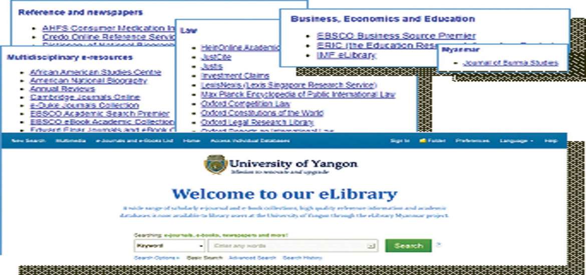 စာအုပ်စာတမ်း စုဆောင်းရာတွင် သင်ကြားသင်ယူမှုကို အထောက်အကူပြုစေ မည့် Printed Sources ဖြစ်သည့် ပညာရပ် ဆိုင်ရာ စာအုပ်များ၊ ရည်ညွှန်းစာအုပ်များနှင့် သုတ၊ ရသ စာအုပ်များ အပြင်လစဉ်၊ အပတ် စဉ် မဂ္ဂဇင်း၊ ဂျာနယ်များ၊နေ့စဉ်ထုတ်သတင်း စာများ၊ ပညာရပ်ဆိုင်ရာ သုတေသနဂျာနယ် များကို စုဆောင်းထားရှိပါသည်။ စာအုပ် စာတမ်းများကို စုဆောင်းရာတွင် (Printed Sources) များ သာမက Non Printed Sources ဖြစ်သည့် Academic Online eRecources များဖြစ်သည့် ပညာရပ်ပေါင်းစုံ ပါဝင်သော Online Database ကိုလည်း Online Library ကဲ့သို့ လေ့လာအသုံးပြုနိုင် ပါသည်။
