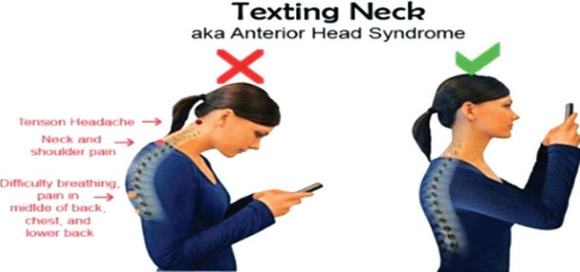 မဖြစ်မနေ မိုဘိုင်းဖုန်းအသုံးပြုပါကလည်း ကိုင်တွယ်အသုံးပြုသည့် အနေ အထားမှန်ရန် အရေးကြီးပါသည်။ မိုဘိုင်းဖုန်း ကိုင်တွယ်အသုံးပြုစဉ် ဦးခေါင်း ကို မတ်မတ်ထားသင့်ကြောင်း၊ ကျောရိုးနဲ့အပြိုင် တစ်ဖြောင့်တည်း ထားသင့် ကြောင်း၊ ဦးခေါင်းငုံ့ထားပြီး ခါးကိုင်းနေသည့် အနေအထားဖြင့် ဖုန်းအသုံးပြု ပါက ကျောရိုးပေါ်သို့ ဝန်ပိစေပြီး ဆိုးကျိုးများ ဖြစ်စေနိုင်ကြောင်း ပုံ (၄) ပါ အတိုင်း Texting Neck ဖြစ်စေနိုင်ကြောင်း၊ အထူးသဖြင့် နာရီ များစွာ မိုဘိုင်းဖုန်း အသုံးပြုပါက ၇ နှစ်ခန့်အရွယ် ကလေးငယ်များတွင် ကျောရိုး ပုံစံမမှန် ကွေးသွားပြီး ခါးကုန်းကြီး ဖြစ်သွားနိုင်ကြောင်းကို ကျောရိုးနှင့် အဆစ်အမျက်  ပညာရှင် Dr James Carter က ၂၀၁၅ ခုနှစ်တွင် ပြောကြား ခဲ့ပါသည်။