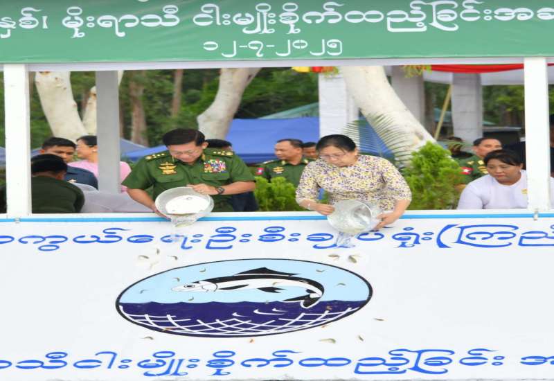 နေပြည်တော်ကောင်စီနယ်မြေ၊ ဇေယျာသီရိမြို့နယ်အတွင်းရှိ ရေဆင်းဆည်အတွင်း ငါးသယံဇာတများတိုးပွားစေရန်အတွက် ကာကွယ်ရေးဦးစီးချုပ်ရုံး (ကြည်း၊ ရေ၊ လေ) မိသားစုများက ၂၀၂၅ ခုနှစ်၊ မိုးရာသီ ငါးမျိုးများစိုက်ထည့်ခြင်းအခမ်းအနားကို ယနေ့ညနေပိုင်းတွင် ကျင်းပပြုလုပ်ရာ နိုင်ငံတော်စီမံအုပ်ချုပ်ရေးကောင်စီဥက္ကဋ္ဌ တပ်မတော်ကာကွယ်ရေးဦးစီးချုပ် ဗိုလ်ချုပ်မှူးကြီး မင်းအောင်လှိုင် တက်ရောက်၍ ငါးမျိုးများအား ဦးဆောင်စိုက်ထည့်ပေးသည်။