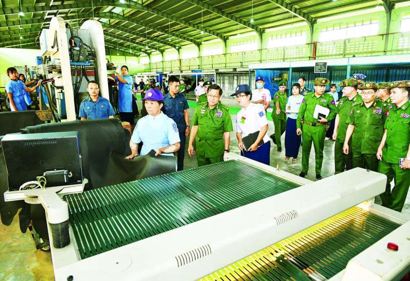 နိုင်ငံတော်စီမံအုပ်ချုပ်ရေးကောင်စီဥက္ကဋ္ဌ တပ်မတော်ကာကွယ်ရေးဦးစီးချုပ် ဗိုလ်ချုပ်မှူးကြီး မင်းအောင်လှိုင်သည် ခရီးစဉ်တွင် လိုက်ပါလာသည့် အဖွဲ့ဝင်များ၊ မန္တလေးတိုင်းဒေသကြီး ဝန်ကြီးချုပ်၊ အလယ်ပိုင်းတိုင်းစစ်ဌာနချုပ်တိုင်းမှူးနှင့် တာဝန်ရှိသူများ လိုက်ပါ၍ ယနေ့နံနက်ပိုင်းတွင် တပ်မတော်ချည်မျှင်နှင့် အထည်စက်ရုံ (မိတ္ထီလာ) နှင့် အမှတ် (၃) ဘိလပ်မြေစက်ရုံ (တန် ၁၂၀၀) တို့၏ ကုန်ထုတ်စွမ်းအား မြှင့်တင်ဆောင်ရွက်နေမှု အခြေအနေများကို သွားရောက်ကြည့်ရှုစစ်ဆေးသည်။