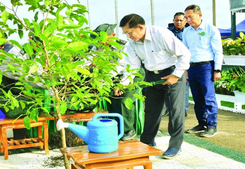 ပြည်ထောင်စုနယ်မြေနေပြည်တော် ၂၀၂၅ ခုနှစ် ဒုတိယအကြိမ် မိုးရာသီသစ်ပင်စိုက်ပျိုးပွဲအခမ်းအနားကို ယနေ့နံနက်ပိုင်းတွင် ပြည်ထောင်စုနယ်မြေနေပြည်တော် ဒက္ခိဏသီရိမြို့နယ် ရန်အောင်မြင်ကြိုးဝိုင်း၌ကျင်းပရာ နိုင်ငံတော်စီမံအုပ်ချုပ်ရေးကောင်စီဥက္ကဋ္ဌ နိုင်ငံတော်ဝန်ကြီးချုပ် ဗိုလ်ချုပ်မှူးကြီး မင်းအောင်လှိုင်တက်ရောက်၍ ခရေပျိုးပင်ကို ဦးဆောင်စိုက်ပျိုးပေးသည်။