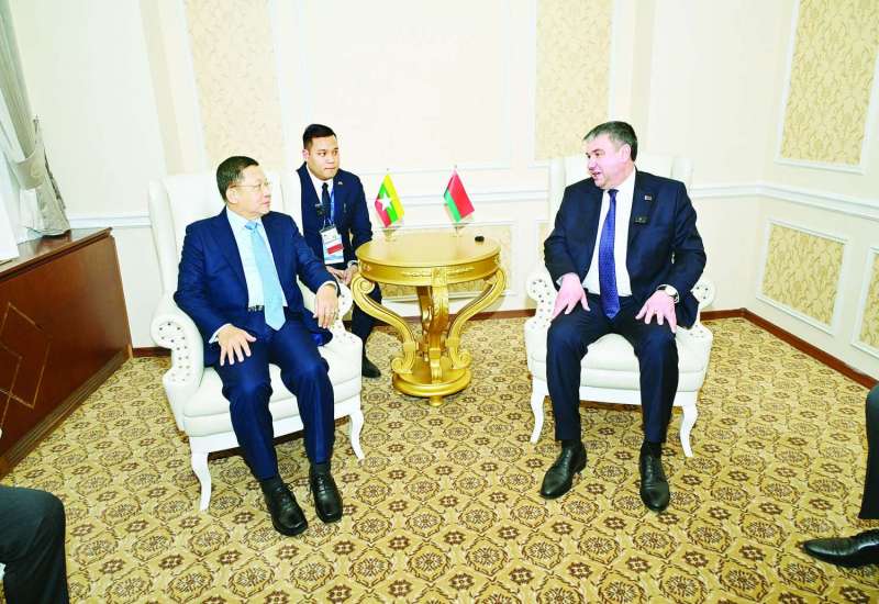 ဘယ်လာရုစ်သမ္မတနိုင်ငံ မင့်စ်မြို့၌ နိုင်ငံတော်အဆင့် ချစ်ကြည်ရေးခရီးရောက်ရှိနေသည့် နိုင်ငံတော်စီမံအုပ်ချုပ်ရေးကောင်စီဥက္ကဋ္ဌ နိုင်ငံတော်ဝန်ကြီးချုပ် ဗိုလ်ချုပ်မှူးကြီး မင်းအောင်လှိုင်သည် ဘယ်လာရုစ်သမ္မတနိုင်ငံဝန်ကြီးချုပ် H.E. Mr. Roman Alexand-rovich Golovchenko နှင့် ယနေ့ဒေသစံတော်ချိန် ညနေပိုင်းတွင် ဝန်ကြီးချုပ်ရုံးအစည်းအဝေးခန်းမ၌ တွေ့ဆုံဆွေးနွေးသည်။