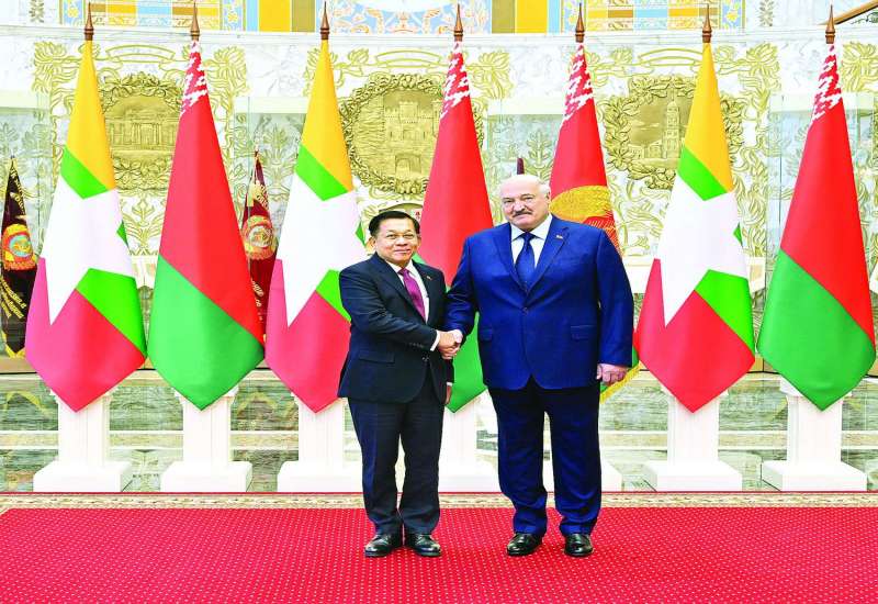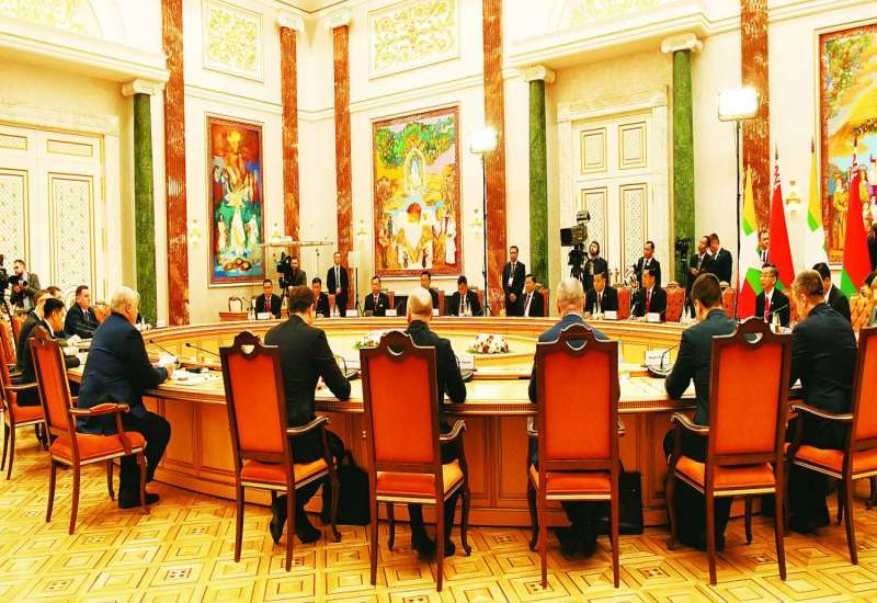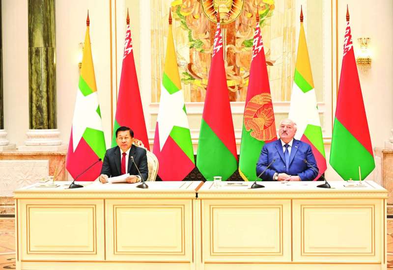 မြန်မာ-ဘယ်လာရုစ် နှစ်နိုင်ငံ နိုင်ငံတော်အဆင့်တွေ့ဆုံဆွေးနွေးပွဲကို ယနေ့ဒေသစံတော်ချိန် မွန်းလွဲပိုင်းတွင် ဘယ်လာရုစ်နိုင်ငံ မင့်စ်မြို့ရှိ သမ္မတနန်းတော်အစည်းအဝေးခန်းမ၌ ကျင်းပပြုလုပ်ရာ နိုင်ငံတော်စီမံအုပ်ချုပ်ရေးကောင်စီဥက္ကဋ္ဌ နိုင်ငံတော်ဝန်ကြီးချုပ် ဗိုလ်ချုပ်မှူးကြီး မင်းအောင်လှိုင်နှင့် ဘယ်လာရုစ်သမ္မတနိုင်ငံသမ္မတ H.E. Mr. Alexander Gregoryevich Lukashenko တို့ တက်ရောက်ဆွေးနွေးကြသည်။