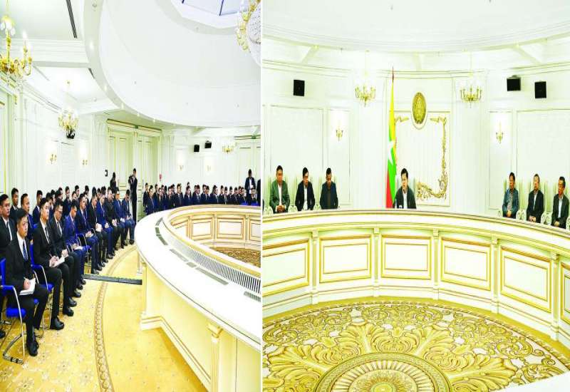 ရုရှားဖက်ဒရေးရှင်းနိုင်ငံ စိန့်ပီတာစဘတ်မြို့၌ တရားဝင်ချစ်ကြည်ရေးခရီးရောက်ရှိနေသည့် နိုင်ငံတော်စီမံအုပ်ချုပ်ရေးကောင်စီဥက္ကဋ္ဌ နိုင်ငံတော်ဝန်ကြီးချုပ် ဗိုလ်ချုပ်မှူးကြီး မင်းအောင်လှိုင်သည် ရုရှားဖက်ဒရေးရှင်းနိုင်ငံ စိန့်ပီတာစဘတ်မြို့ မြန်မာကောင်စစ်ဝန်ချုပ်ရုံး ဝန်ထမ်းမိသားစုများအား ဒေသစံတော်ချိန် ယနေ့နံနက်ပိုင်းတွင် မြန်မာကောင်စစ်ဝန်ချုပ်ရုံး၌ တွေ့ဆုံအမှာစကားပြောကြားသည်။