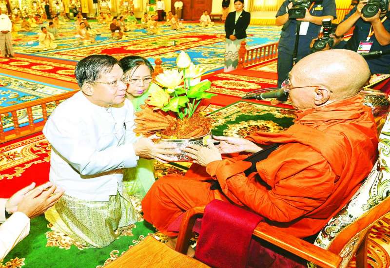ပြည်ထောင်စုသမ္မတမြန်မာနိုင်ငံတော်၊ နိုင်ငံတော်စီမံအုပ်ချုပ်ရေးကောင်စီ ၂၀၂၄ ခုနှစ် ကထိန်သင်္ကန်းဆက်ကပ်လှူဒါန်းပွဲအခမ်းအနားကို ယနေ့နံနက်ပိုင်းတွင် နေပြည်တော်ရှိ ဥပ္ပါတသန္တိစေတီတော်၊ သာသနာ့မဟာဗိမာန်တော်ကြီး၌ ဆင်ယင်ကျင်းပရာ နိုင်ငံတော်စီမံအုပ်ချုပ်ရေးကောင်စီဥက္ကဋ္ဌ နိုင်ငံတော်ဝန်ကြီးချုပ် ဗိုလ်ချုပ်မှူးကြီး မင်းအောင်လှိုင်နှင့်ဇနီး ဒေါ်ကြူကြူလှတို့ တက်ရောက်၍ ကထိန်လျာသင်္ကန်းနှင့် ကထိန်လှူဖွယ်ပစ္စည်းများ ဆက်ကပ်လှူဒါန်းသည်။