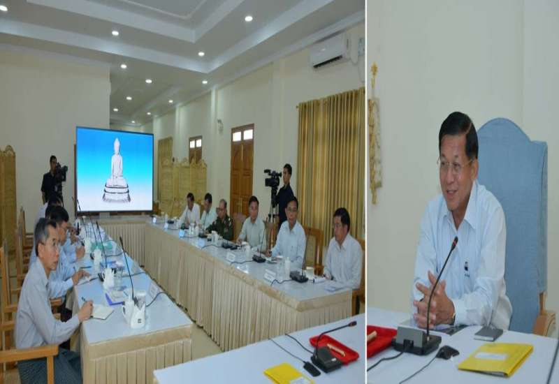 ပြည်ထောင်စုအစိုးရအဖွဲ့အစည်းအဝေး အမှတ်စဉ် (၅/၂၀၂၃)ကို ယနေ့ မွန်းလွဲပိုင်းတွင် နေပြည်တော်ရှိ နိုင်ငံတော်စီမံအုပ်ချုပ်ရေးကောင်စီဥက္ကဋ္ဌရုံး အစည်းအဝေးခန်းမ၌ကျင်းပရာ နိုင်ငံတော်စီမံအုပ်ချုပ်ရေးကောင်စီဥက္ကဋ္ဌ နိုင်ငံတော်ဝန်ကြီးချုပ် ဗိုလ်ချုပ်မှူးကြီး မင်းအောင်လှိုင် တက်ရောက်အမှာစကားပြောကြားသည်။
