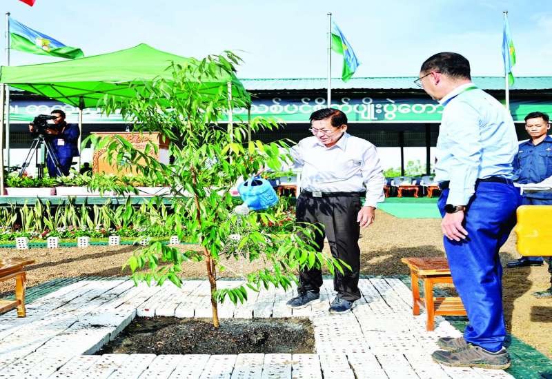 ၂၀၂၃ ခုနှစ်၊ တတိယအကြိမ် မိုးရာသီသစ်ပင်စိုက်ပျိုးပွဲအခမ်းအနားကို ယနေ့နံနက်ပိုင်းတွင် ပြည်ထောင်စုနယ်မြေ နေပြည်တော်၊ ဒက္ခိဏခရိုင်၊ လယ်ဝေးမြို့နယ်၊ ရန်အောင်မြင်ကြိုးဝိုင်း အကွက်အမှတ်(၁၃)အတွင်း ရန်ကုန်-မန္တလေး အမြန်လမ်း၊ မိုင်တိုင်အမှတ် ၂၀၄ မိုင် ၁ ဖာလုံမှ မာရဝိဇယဘုရားအဝင်လမ်းဝဲယာ၌ ကျင်းပရာ နိုင်ငံတော်စီမံကောင်စီဥက္ကဋ္ဌ နိုင်ငံတော်ဝန်ကြီးချုပ် ဗိုလ်ချုပ်မှူးကြီး မင်းအောင်လှိုင် တက်ရောက်၍ ကံ့ကော်ပျိုးပင်ကို ဦးဆောင်စိုက်ပျိုးပေးသည်။
