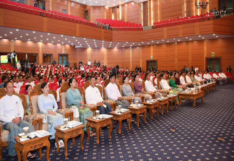 စာဆိုတော် ရှင်မဟာရဋ္ဌသာရ ၅၅၅ နှစ်မြောက်မွေးနေ့ အထိမ်းအမှတ်စာတမ်းဖတ်ပွဲ ဖွင့်ပွဲအခမ်းအနားကို ယနေ့နံနက်ပိုင်းတွင် နေပြည်တော်ရှိ မြန်မာအပြည်ပြည်ဆိုင်ရာ ကွန်ဗင်းရှင်းဗဟိုဌာန-၂ ၌ ကျင်းပပြုလုပ်ရာ နိုင်ငံတော်စီမံအုပ်ချုပ်ရေး ကောင်စီဥက္ကဋ္ဌ နိုင်ငံတော်ဝန်ကြီးချုပ် ဗိုလ်ချုပ်မှူးကြီး မင်းအောင်လှိုင်နှင့် ဇနီး ဒေါ်ကြူကြူလှတို့ တက်ရောက်ကြသည်။