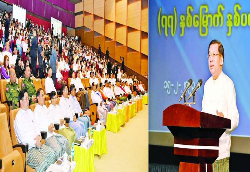 (၇၅)နှစ်မြောက် ပြည်ထောင်စုသမ္မတမြန်မာနိုင်ငံတော်နှင့် ရုရှားဖက်ဒရေးရှင်း နိုင်ငံတို့အကြား သံတမန်ဆက်သွယ်ထူထောင်မှု အထိမ်းအမှတ်အဖြစ် မြန်မာ-ရုရှားချစ်ကြည်ရေးနှင့် ပူးပေါင်းဆောင်ရွက်ရေးဖိုရမ်ကို ယနေ့တွင် နေပြည်တော်ရှိ မြန်မာအပြည်ပြည်ဆိုင်ရာ ကွန်ဗင်းရှင်းဗဟိုဌာန-၂ ၌ ကျင်းပပြုလုပ်ရာ နိုင်ငံတော်စီမံ အုပ်ချုပ်ရေးကောင်စီဥက္ကဋ္ဌ နိုင်ငံတော်ဝန်ကြီးချုပ် ဗိုလ်ချုပ်မှူးကြီး မင်းအောင်လှိုင် တက်ရောက်ပြီး အဖွင့်အမှာစကား ပြောကြားသည်။