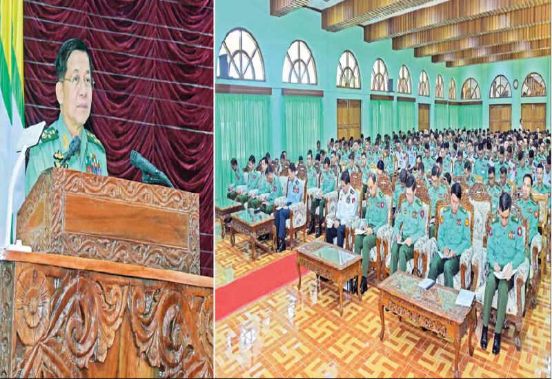 နိုင်ငံတော်စီမံအုပ်ချုပ်ရေးကောင်စီဥက္ကဋ္ဌ တပ်မတော်ကာကွယ်ရေးဦးစီးချုပ် ဗိုလ်ချုပ်မှူးကြီး မင်းအောင်လှိုင်သည် ယနေ့မွန်းလွဲပိုင်းတွင် အနောက်ပိုင်းတိုင်းစစ်ဌာနချုပ်၊ စစ်တောတပ်နယ်ရှိ နယ်မြေခံရေတပ်စခန်းဌာနချုပ်မှ အရာရှိ၊ စစ်သည်၊ မိသားစုများအား အဆိုပါ ရေတပ်စခန်းဌာနချုပ်ခန်းမ၌ သွားရောက်တွေ့ဆုံအမှာစကား ပြောကြား သည်။