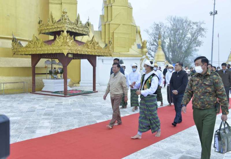 နိုင်ငံတော်စီမံအုပ်ချုပ်ရေးကောင်စီဥက္ကဋ္ဌ နိုင်ငံတော်ဝန်ကြီးချုပ် ဗိုလ်ချုပ်မှူးကြီး မင်းအောင်လှိုင်သည် ဇနီးဒေါ်ကြူကြူလှ၊ ကာကွယ်ရေးဦးစီးချုပ် (ရေ) ဗိုလ်ချုပ်ကြီး မိုးအောင်နှင့်ဇနီး၊ ကာကွယ်ရေးဦးစီးချုပ်(လေ) ဗိုလ်ချုပ်ကြီးထွန်းအောင်နှင့် ဇနီး၊ ကာကွယ်ရေး ဦးစီးချုပ်ရုံးမှ တပ်မတော်အရာရှိကြီးများနှင့်ဇနီးများ၊ မြောက်ပိုင်းတိုင်းစစ်ဌာနချုပ် တိုင်းမှူး ဗိုလ်ချုပ်ကိုကိုမောင်နှင့် တာဝန်ရှိသူများလိုက်ပါ၍ ယနေ့နံနက်ပိုင်းတွင် ကချင်ပြည်နယ်၊ ပူတာအိုခရိုင်၊ မချမ်းဘော့မြို့နယ်၊ ကောင်းမှုလုံကျေးရွာ၊ နမ့်ကျို(မလိခ)မြစ်ကမ်းနံဘေးတွင် တည်ထားကိုးကွယ်သည့် ရှေးဟောင်းသမိုင်းဝင် ကောင်းမှုလုံစေတီတော်မြတ်ကြီးသို့ သွားရောက်ဖူးမြော်ကြည်ညိုသည်။