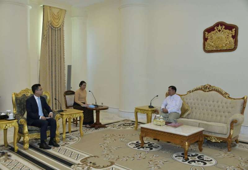 နိုင်ငံတော်စီမံအုပ်ချုပ်ရေးကောင်စီဥက္ကဋ္ဌ နိုင်ငံတော်ဝန်ကြီးချုပ် ဗိုလ်ချုပ်မှူးကြီး မင်းအောင်လှိုင်သည် မြန်မာနိုင်ငံဆိုင်ရာ ကမ္ဘောဒီးယားနိုင်ငံသံအမတ်ကြီး H.E. Mr. CHHOUK Bunna အား ယနေ့မွန်းလွဲပိုင်းတွင် နေပြည်တော်ရှိ နိုင်ငံတော်စီမံ အုပ်ချုပ်ရေးကောင်စီဥက္ကဋ္ဌရုံး၊ ဧည့်ခန်းမ၌ လက်ခံတွေ့ဆုံသည်။