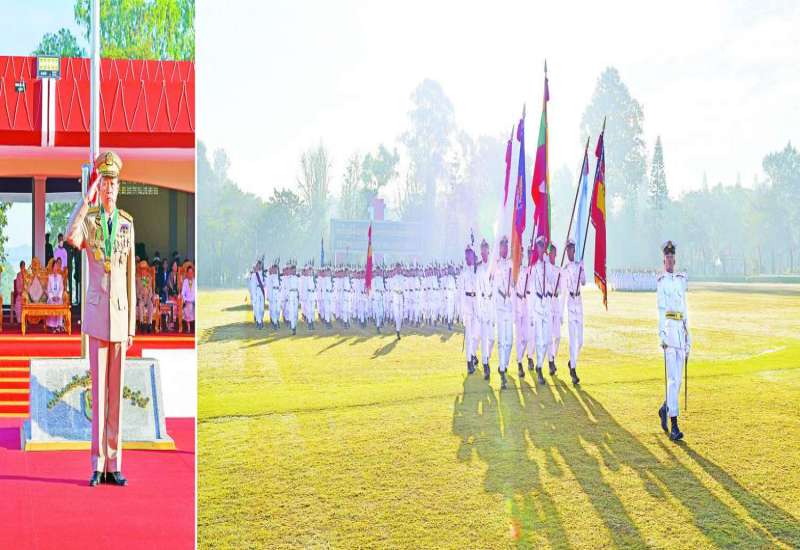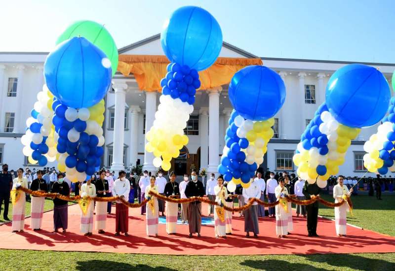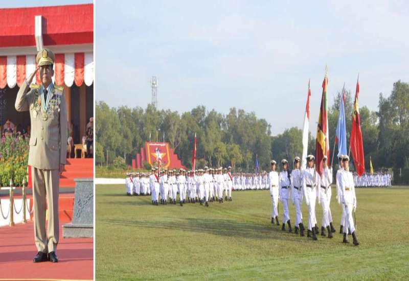 တပ်မတော်ဆေးတက္ကသိုလ် ၊ ဗိုလ်လောင်းသင်တန်းအမှတ်စဉ်(၂၃) သင်တန်းဆင်းဂုဏ်ပြုစစ်ရေးပြအခမ်းအနားကို ယနေ့နံနက်ပိုင်းတွင် ရန်ကုန်မြို့ရှိ အဆိုပါ တပ်မတော်ဆေးတက္ကသိုလ်စစ်ရေးပြကွင်း၌ ကျင်းပပြုလုပ်ရာ နိုင်ငံတော်စီမံအုပ်ချုပ်ရေးကောင်စီဥက္ကဋ္ဌ တပ်မတော်ကာကွယ်ရေးဦးစီးချုပ် ဗိုလ်ချုပ်မှူးကြီး မဟာသရေစည်သူမင်းအောင်လှိုင် တက်ရောက်မိန့်ခွန်းပြောကြားသည်။