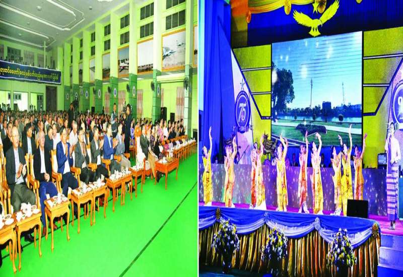 တပ်မတော် (လေ) ၏ ဖွဲ့စည်းတည်ထောင်မှု (၇၅) နှစ်မြောက် စိန်ရတုနှစ်ပတ်လည်နေ့ အခမ်းအနားနှင့် လေယာဉ်၊ ရဟတ်ယာဉ်များ တပ်တော်ဝင် အခမ်းအနား အောင်မြင်ခြင်း အထိမ်းအမှတ်အဖြစ် ဂုဏ်ပြုညစာစားပွဲနှင့် ပဒေသာကပွဲ အခမ်းအနားကို ယနေ့ညပိုင်းတွင် မိတ္ထီလာတပ်နယ်ရှိ လေကြောင်း အတတ်သင် လေတပ်စခန်းဌာနချုပ်၌ ကျင်းပရာ နိုင်ငံတော်စီမံအုပ်ချုပ်ရေးကောင်စီဥက္ကဋ္ဌ တပ်မတော်ကာကွယ်ရေးဦးစီးချုပ် ဗိုလ်ချုပ်မှူးကြီး မင်းအောင်လှိုင် တက်ရောက်ချီးမြှင့်သည်။