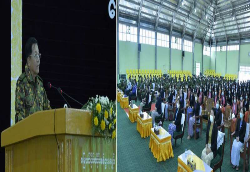 (၇၄) နှစ်မြောက် အပြည်ပြည်ဆိုင်ရာလူ့အခွင့်အရေးနေ့ အထိမ်းအမှတ်အခမ်းအနားကို ယနေ့နံနက်ပိုင်းတွင် နေပြည်တော်ရှိမြန်မာအပြည်ပြည်ဆိုင်ရာ ကွန်ဗင်းရှင်းဗဟိုဌာန-၁ ၌ ကျင်းပပြုလုပ်ရာ နိုင်ငံတော်စီမံအုပ်ချုပ်ရေးကောင်စီဥက္ကဋ္ဌ နိုင်ငံတော်ဝန်ကြီးချုပ် ဗိုလ်ချုပ်မှူးကြီး မင်းအောင်လှိုင် တက်ရောက်အမှာစကားပြောကြားသည်။