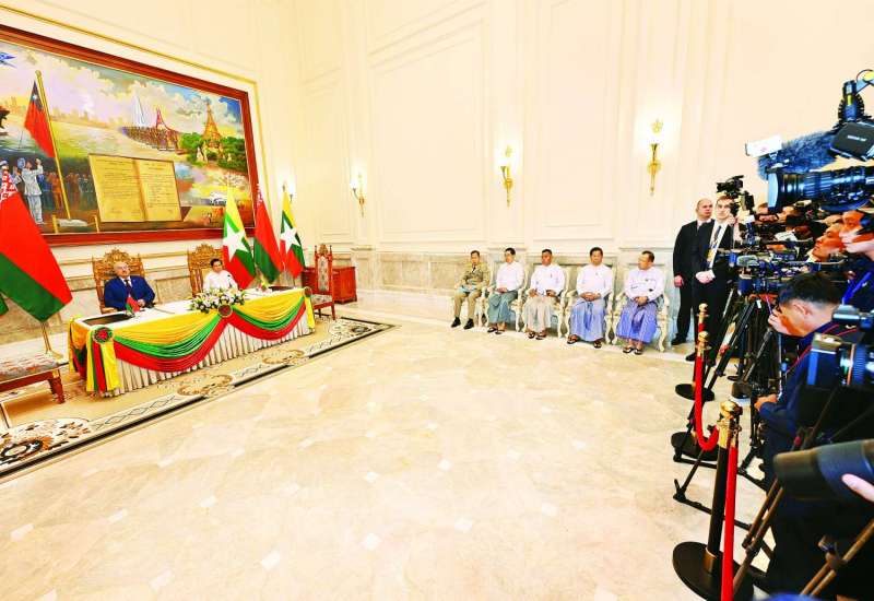 ပြည်ထောင်စုသမ္မတမြန်မာနိုင်ငံတော်ယာယီသမ္မတ နိုင်ငံတော်လုံခြုံရေးနှင့်အေးချမ်းသာယာရေးကော်မရှင်ဥက္ကဋ္ဌ ဗိုလ်ချုပ်မှူးကြီး မင်းအောင်လှိုင်နှင့် ဘယ်လာရုစ်သမ္မတနိုင်ငံသမ္မတ H.E. Mr. Aleksandr Lukashenko တို့သည် ယနေ့နံနက်ပိုင်းတွင် နိုင်ငံတော်သမ္မတအိမ်တော်၌ ကျင်းပသည့် နှစ်နိုင်ငံတွေ့ဆုံဆွေးနွေးပွဲနှင့် နားလည်မှုစာချွှန်လွှာလက်မှတ်ရေးထိုးပွဲအပြီးတွင် နှစ်နိုင်ငံပူးတွဲကြေညာချက်ကို ရှင်းလင်းပြောကြားခဲ့ကြသည်။
