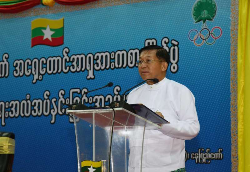 ဗီယက်နမ်နိုင်ငံ၌ ကျင်းပမည့် (၃၁)ကြိမ်မြောက် အရှေ့တောင်အာရှအားကစား ပြိုင်ပွဲသို့ ဝင်ရောက်ယှဉ်ပြိုင်မည့် မြန်မာအားကစားအဖွဲ့များအား အောင်နိုင်ရေးအလံအပ်နှင်းခြင်း အခမ်းအနားကို ယနေ့နံနက် ၉ နာရီတွင် နေပြည်တော်ရှိ ဝဏ္ဏသိဒ္ဓိ အားကစားရုံ(B)ဆောင်၌ ကျင်းပရာ နိုင်ငံတော်စီမံအုပ်ချုပ်ရေး ကောင်စီဥက္ကဋ္ဌ၊ နိုင်ငံတော်ဝန်ကြီးချုပ် ဗိုလ်ချုပ်မှူးကြီး မင်းအောင်လှိုင် တက်ရောက် အမှာစကား ပြောကြားသည်။