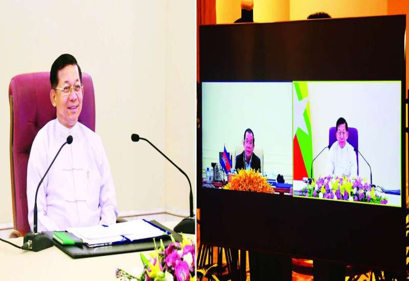 နိုင်ငံတော်စီမံအုပ်ချုပ်ရေးကောင်စီဥက္ကဋ္ဌ၊ နိုင်ငံတော်ဝန်ကြီးချုပ် ဗိုလ်ချုပ်မှူးကြီး မင်းအောင်လှိုင်သည် ကမ္ဘောဒီးယားနိုင်ငံဝန်ကြီးချုပ် Samdech Akka Moha Sena Padei Techo HUN SEN နှင့် ယနေ့နံနက်ပိုင်းတွင် Video Conferencing ဖြင့် တွေ့ဆုံဆွေးနွေးသည်။