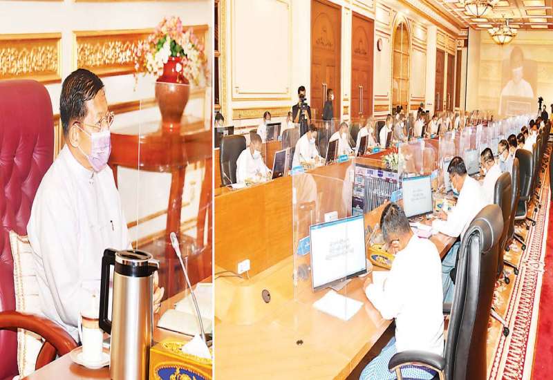 ကိုဗစ် - ၁၉ ရောဂါ ကာကွယ်၊ ထိန်းချုပ်၊ ကုသရေးဆိုင်ရာ အဋ္ဌမအကြိမ် ညှိနှိုင်း အစည်းအဝေးကို ယနေ့မွန်းလွဲပိုင်းတွင် နေပြည်တော်ရှိ ဘုရင့်နောင်ရိပ်သာ အစည်းအဝေး ခန်းမ၌ ကျင်းပပြုလုပ်ရာ နိုင်ငံတော်စီမံအုပ်ချုပ်ရေး ကောင်စီဥက္ကဋ္ဌ၊ ပြည်ထောင်စုသမ္မတ မြန်မာနိုင်ငံတော် အိမ်စောင့်အစိုးရအဖွဲ့၊ နိုင်ငံတော်ဝန်ကြီးချုပ် ဗိုလ်ချုပ်မှူးကြီး မင်းအောင်လှိုင် တက်ရောက်အမှာစကား ပြောကြားသည်။