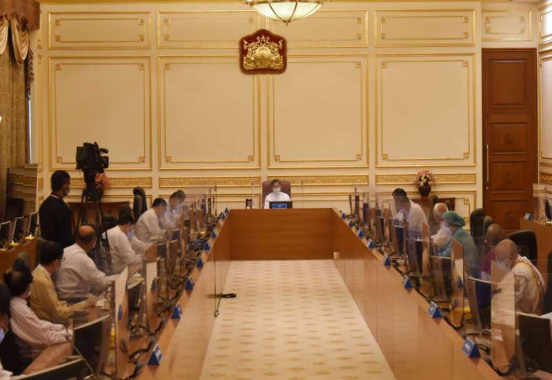 ကိုဗစ် - ၁၉ ရောဂါ ကာကွယ်၊ ထိန်းချုပ်၊ ကုသရေးဆိုင်ရာ (၁၀)ကြိမ်မြောက် ညှိနှိုင်း အစည်းအဝေးကို ယနေ့ နံနက် ၁၀ နာရီတွင် နေပြည်တော်ရှိ ဘုရင့်နောင်ရိပ်သာ အစည်းအဝေးခန်းမ၌ ကျင်းပပြုလုပ်လျက်ရှိပြီး နိုင်ငံတော်စီမံအုပ်ချုပ်ရေး ကောင်စီဥက္ကဋ္ဌ၊ ပြည်ထောင်စုသမ္မတမြန်မာနိုင်ငံတော် အိမ်စောင့်အစိုးရအဖွဲ့၊ နိုင်ငံတော်ဝန်ကြီးချုပ် ဗိုလ်ချုပ်မှူးကြီး မင်းအောင်လှိုင် တက်ရောက် အမှာစကား ပြောကြားသည်။