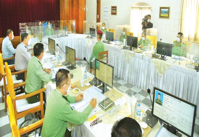 ကိုဗစ် - ၁၉ ရောဂါ ကာကွယ်၊ ထိန်းချုပ်၊ ကုသရေးဆိုင်ရာ ပဉ္စမအကြိမ် ညှိနှိုင်း အစည်းအဝေးကို ယနေ့နံနက်ပိုင်းတွင် နေပြည်တော်ရှိ ဘုရင့်နောင်ရိပ်သာ အစည်းအဝေး ခန်းမ၌ ကျင်းပပြုလုပ်ရာ နိုင်ငံတော်စီမံအုပ်ချုပ်ရေးကောင်စီ ဥက္ကဋ္ဌ ဗိုလ်ချုပ်မှူးကြီး မင်းအောင်လှိုင် တက်ရောက် အမှာစကား ပြောကြားသည်။