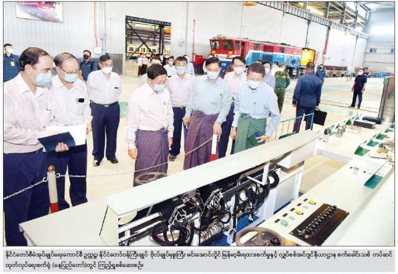 နိုင်ငံတော်စီမံအုပ်ချုပ်ရေးကောင်စီဥက္ကဋ္ဌ နိုင်ငံတော်ဝန်ကြီးချုပ် ဗိုလ်ချုပ်မှူးကြီး မင်းအောင်လှိုင်သည် ယနေ့မွန်းလွဲပိုင်းတွင် နေပြည်တော်ကောင်စီနယ်မြေ၊ ပုဗ္ဗသီရိမြို့နယ်ရှိ ပို့ဆောင်ရေးနှင့် ဆက်သွယ်ရေးဝန်ကြီးဌာန၊ မြန်မာ့မီးရထား စက်မှုနှင့်လျှပ်စစ် အင်ဂျင်နီယာဌာန စက်ခေါင်းသစ်တပ်ဆင် ထုတ်လုပ်ရေး စက်ရုံ(နေပြည်တော်)နှင့် ဘူတာ ကြီးတို့သို့ သွားရောက်ကြည့်ရှု စစ်ဆေးသည်။