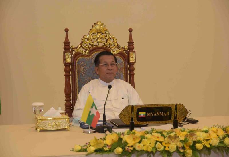 ကိုဗစ် - ၁၉ ရောဂါ ကာကွယ်၊ ထိန်းချုပ်၊ ကုသရေးဆိုင်ရာများတွင် အာဆီယံနိုင်ငံများ၊ မိတ်ဆွေနိုင်ငံများအပါအဝင် နိုင်ငံတကာနှင့် ပူးပေါင်းဆောင်ရွက်မှုများ တိုးမြှင့်လုပ်ဆောင်နိုင်ရေး ညှိနှိုင်းအစည်းအဝေးကို ယနေ့နံနက်ပိုင်းတွင် နေပြည်တော်ရှိ ဘုရင့်နောင်ရိပ်သာ အစည်းအဝေးခန်းမ၌ ကျင်းပပြုလုပ်ရာ နိုင်ငံတော်စီမံအုပ်ချုပ်ရေးကောင်စီ ဥက္ကဋ္ဌ ဗိုလ်ချုပ်မှူးကြီး မင်းအောင်လှိုင် တက်ရောက် အမှာစကားပြောကြားသည်။