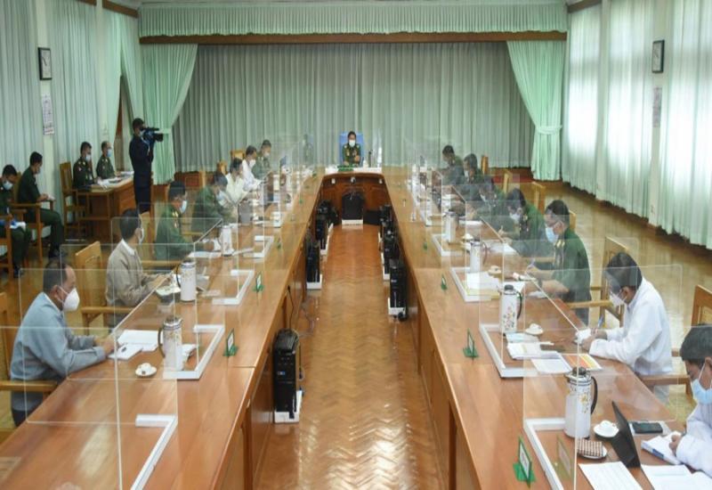 COVID-19 ရောဂါ ကာကွယ်၊ ထိန်းချုပ်၊ ကုသရေးဆိုင်ရာ ဒုတိယအကြိမ် ညှိနှိုင်းအစည်းအဝေးကို ယနေ့မွန်းလွဲပိုင်းတွင် နေပြည်တော်ရှိ ကာကွယ်ရေးဦးစီး ချုပ်ရုံး(ကြည်း)၊ အစည်းအဝေးခန်းမ၌ ကျင်းပပြုလုပ်ရာ နိုင်ငံတော်စီမံအုပ်ချုပ်ရေး ကောင်စီဥက္ကဋ္ဌ တပ်မတော်ကာကွယ်ရေးဦးစီးချုပ် ဗိုလ်ချုပ်မှူးကြီး မင်းအောင်လှိုင် တက်ရောက် အမှာစကားပြောကြားသည်။