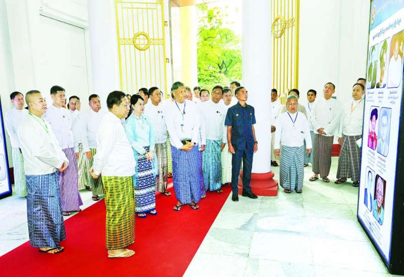 နိုင်ငံတော်လုံခြုံရေးနှင့် အေးချမ်းသာယာရေးကော်မရှင်ဥက္ကဋ္ဌ တပ်မတော်ကာကွယ်ရေးဦးစီးချုပ် ဗိုလ်ချုပ်မှူးကြီး မင်းအောင်လှိုင်ထံသို့ ငြိမ်းချမ်းရေးဆွေးနွေးပွဲသို့ တက်ရောက်ခဲ့သည့် တိုင်းရင်းသားလက်နက်ကိုင်ကိုယ်စားလှယ်အဖွဲ့များက ယနေ့နံနက်ပိုင်းတွင် နေပြည်တော်ရှိ ဘုရင့်နောင်ရိပ်သာဧည့်ခန်းမ၌ လာရောက်ဂါရဝပြုတွေ့ဆုံသည်။