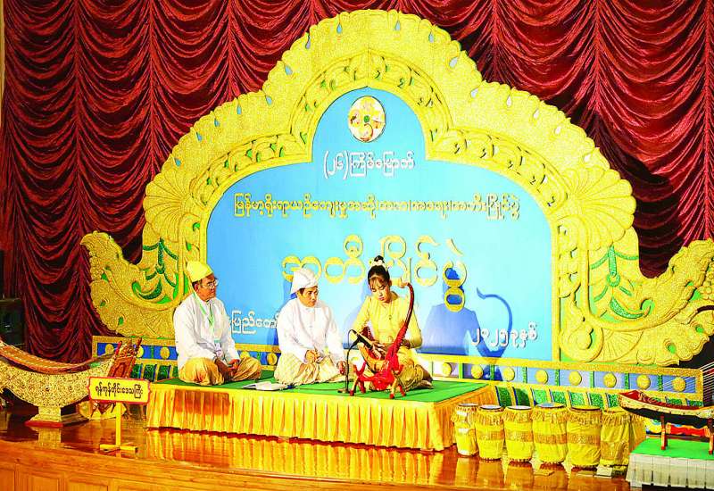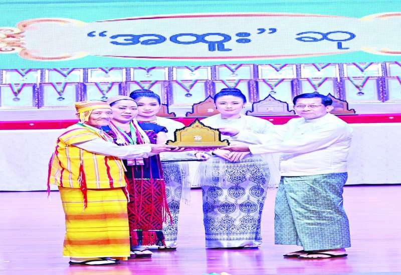 (၂၆) ကြိမ်မြောက် မြန်မာ့ရိုးရာယဉ်ကျေးမှု အဆို၊ အက၊ အရေး၊ အတီးပြိုင်ပွဲ ဂုဏ်ပြုမှတ်တမ်းလွှာပေးအပ်ပွဲနှင့် ဂုဏ်ပြုညစာစားပွဲအခမ်းအနားကို ယနေ့ညနေပိုင်းတွင် နေပြည်တော်ရှိ ဇေယျာသီရိဗိမာန်၊ ရေခဲတောင်ခန်းမ၌ ကျင်းပရာ ပြည်ထောင်စုသမ္မတမြန်မာနိုင်ငံတော် ယာယီသမ္မတ နိုင်ငံတော်လုံခြုံရေးနှင့်အေးချမ်းသာယာရေးကော်မရှင်ဥက္ကဋ္ဌ ဗိုလ်ချုပ်မှူးကြီး မင်းအောင်လှိုင် တက်ရောက်ချီးမြှင့်သည်။