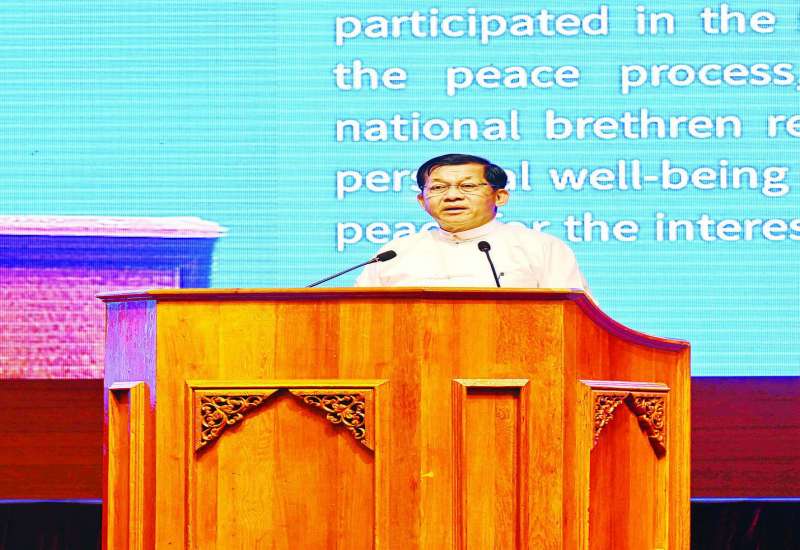 တစ်နိုင်ငံလုံး ပစ်ခတ်တိုက်ခိုက်မှုရပ်စဲရေး သဘောတူစာချုပ်(NCA) (၁၀)နှစ်ပြည့် နှစ်ပတ်လည်နေ့အခမ်းအနားကို ယနေ့နံနက်ပိုင်းတွင် နေပြည်တော်ရှိ မြန်မာအပြည်ပြည်ဆိုင်ရာကွန်ဗင်းရှင်းဗဟိုဌာန(၁) (MICC-I)၌ ကျင်းပရာ ပြည်ထောင်စုသမ္မတမြန်မာနိုင်ငံတော် ယာယီသမ္မတ နိုင်ငံတော်လုံခြုံရေးနှင့်အေးချမ်းသာယာရေးကော်မရှင် ဥက္ကဋ္ဌ အမျိုးသားစည်းလုံးညီညွတ်ရေးနှင့်ငြိမ်းချမ်းရေးဖော်ဆောင်မှုဗဟိုကော်မတီ ဥက္ကဋ္ဌ တပ်မတော်ကာကွယ်ရေးဦးစီးချုပ် ဗိုလ်ချုပ်မှူးကြီး မင်းအောင်လှိုင် တက်ရောက်မိန့်ခွန်းပြောကြားသည်။