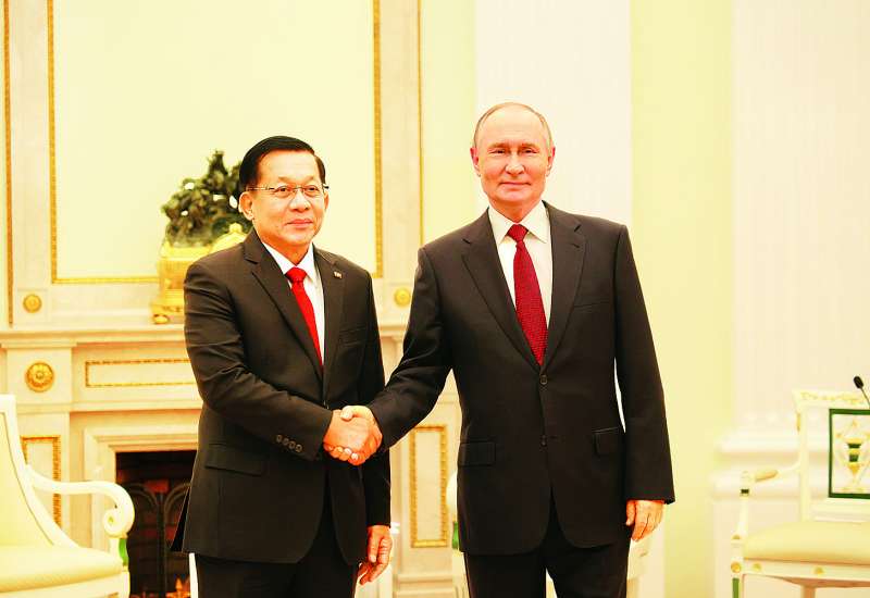 ရုရှားဖက်ဒရေးရှင်းနိုင်ငံသမ္မတ မစ္စတာဗလာဒီမာပူတင်၏ ဖိတ်ကြားချက်အရ ရုရှားဖက်ဒရေးရှင်းနိုင်ငံသို့ အလုပ်သဘောခရီးရောက်ရှိနေသည့် ပြည်ထောင်စုသမ္မတမြန်မာနိုင်ငံတော် ယာယီသမ္မတ နိုင်ငံတော်လုံခြုံရေးနှင့်အေးချမ်းသာယာရေးကော်မရှင်ဥက္ကဋ္ဌ ဗိုလ်ချုပ်မှူးကြီး မင်းအောင်လှိုင်သည် ယနေ့ညပိုင်းတွင် မော်စကိုမြို့ ကရင်မလင်နန်းတော်၌ ရုရှားဖက်ဒရေးရှင်းနိုင်ငံသမ္မတ H.E. Vladimir Vladimirovich Putin နှင့် တွေ့ဆုံဆွေးနွေးသည်။