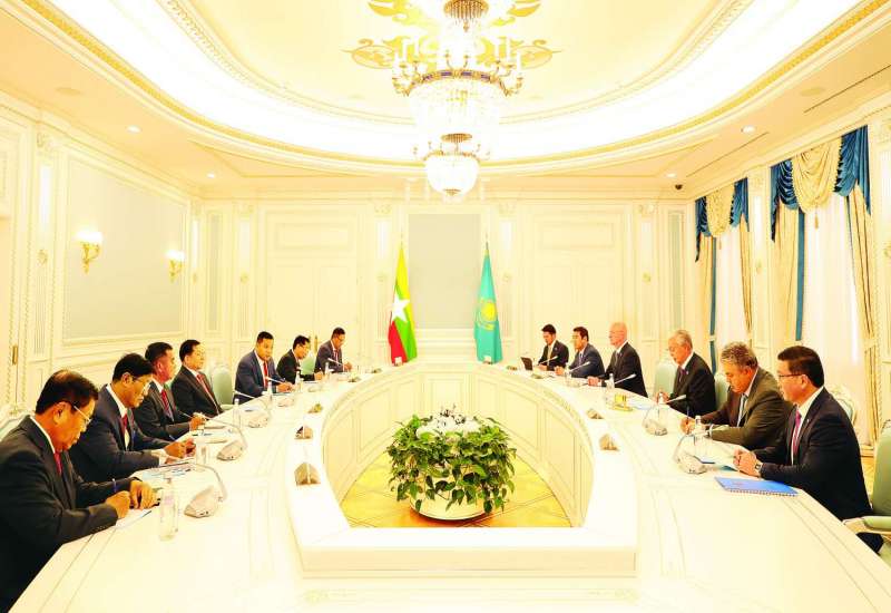 ပြည်ထောင်စုသမ္မတ မြန်မာနိုင်ငံတော် ယာယီသမ္မတ နိုင်ငံတော်လုံခြုံရေးနှင့် အေးချမ်းသာယာရေးကော်မရှင်ဥက္ကဋ္ဌ ဗိုလ်ချုပ်မှူးကြီး မင်းအောင်လှိုင်သည် ယနေ့မွန်းလွဲပိုင်းတွင် ကာဇက်စတန်သမ္မတနိုင်ငံ သမ္မတ H.E. Mr. Kassym-Jomart Tokayev နှင့် ကာဇက်စတန်သမ္မတနိုင်ငံ သမ္မတနန်းတော်၌ တွေ့ဆုံသည်။