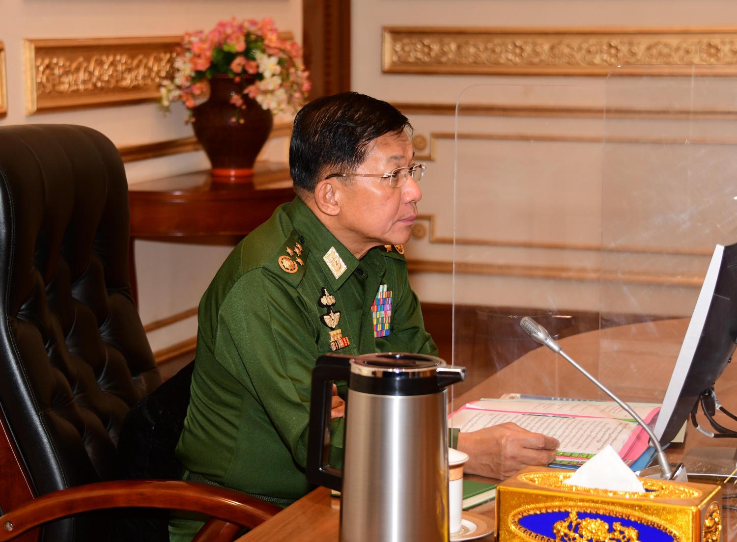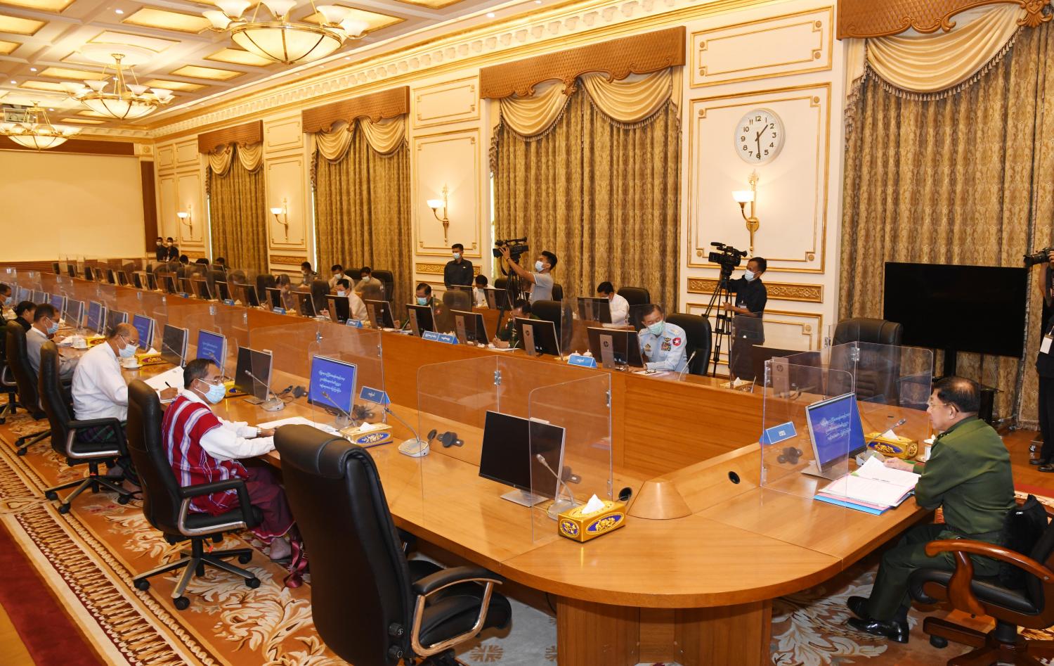 လုံခြုံရေး၊ တည်ငြိမ်အေးချမ်းရေးနှင့် တရားဥပဒေစိုးမိုးရေးကော်မတီ (၁/၂၀၂၁) အစည်းအဝေးကို ယနေ့ မွန်းလွဲပိုင်းတွင် နေပြည်တော်ရှိ နိုင်ငံတော်စီမံအုပ်ချုပ်ရေး ကောင်စီဥက္ကဋ္ဌရုံး အစည်းအဝေးခန်းမ၌ ကျင်းပရာ လုံခြုံရေး၊ တည်ငြိမ်အေးချမ်းရေးနှင့် တရားဥပဒေစိုးမိုးရေးကော်မတီဥက္ကဋ္ဌ၊ နိုင်ငံတော် စီမံအုပ်ချုပ်ရေးကောင်စီဥက္ကဋ္ဌ၊ တပ်မတော်ကာကွယ်ရေးဦးစီးချုပ် ဗိုလ်ချုပ်မှူးကြီးမင်းအောင်လှိုင် တက်ရောက်အမှာစကား ပြောကြားသည်။