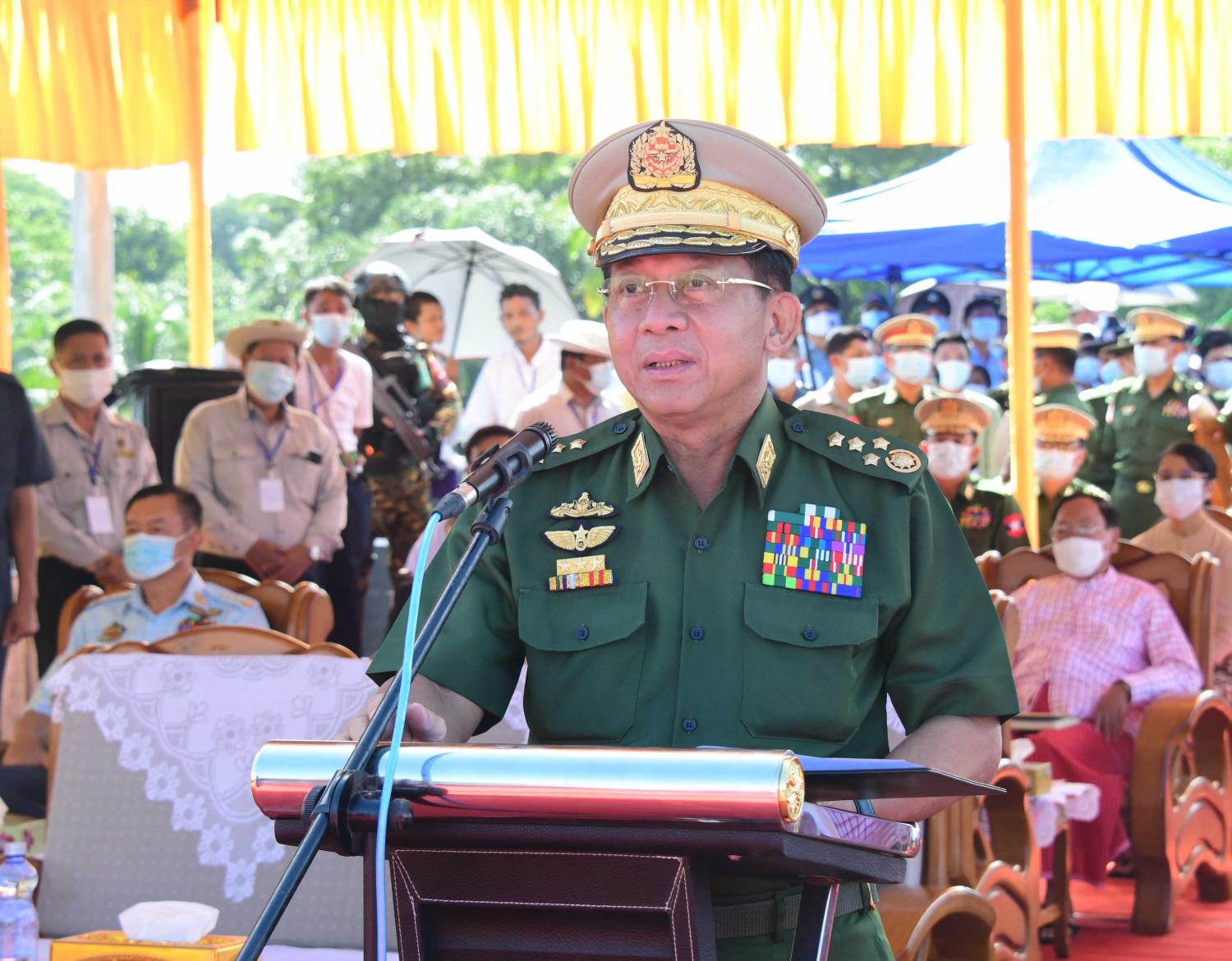 နိုင်ငံတော်စီမံအုပ်ချုပ်ရေးကောင်စီအနေဖြင့် ယာယီသမ္မတ၏ တာဝန်ပေးအပ် ချက်အရ ဖွဲ့စည်းပုံ အခြေခံဥပဒေ ၂၀၀၈ ခုနှစ်နှင့်အညီ နိုင်ငံတော်ကို အရေးပေါ် အခြေ အနေအဖြစ် ကြေညာပြီး  ဖေဖော်ဝါရီ ၁ ရက်မှစတင်၍ နိုင်ငံတော် တာဝန်များကို ခေတ္တတာဝန်ယူ ဆောင်ရွက်လျက်ရှိပါကြောင်း၊ တာဝန်ထမ်းဆောင်နေသည့် ကာလ အတွင်း ရှေ့လုပ်ငန်းစဉ် ၅ ရပ်နှင့် ဦးတည်ချက် ၉ ရပ်ကို ချမှတ်ကာ နိုင်ငံတော် တည်ငြိမ်အေးချမ်းပြီး ခေတ်မီဖွံ့ဖြိုးတိုးတက်စေရန် ကြိုးပမ်း ဆောင်ရွက်လျက်ရှိပါကြောင်း၊ ချမှတ်ထားသည့် ရှေ့လုပ်ငန်းစဉ်များနှင့် ဦးတည်ချက်များကို အောင်မြင်စွာ အကောင်အထည်ဖော်နိုင်ရေး ဆောင်ရွက်ရာတွင် နိုင်ငံသူ၊ နိုင်ငံသားများ၏ လိုအပ်ချက်များကို တတ်နိုင်သရွေ့ ဖြည့်ဆည်းဆောင်ရွက် ပေးနိုင်ရေး ဦးစားပေးအဖြစ် သတ်မှတ်ဆောင်ရွက်လျက်ရှိသည်ကို ပြောကြားလိုပါကြောင်း။