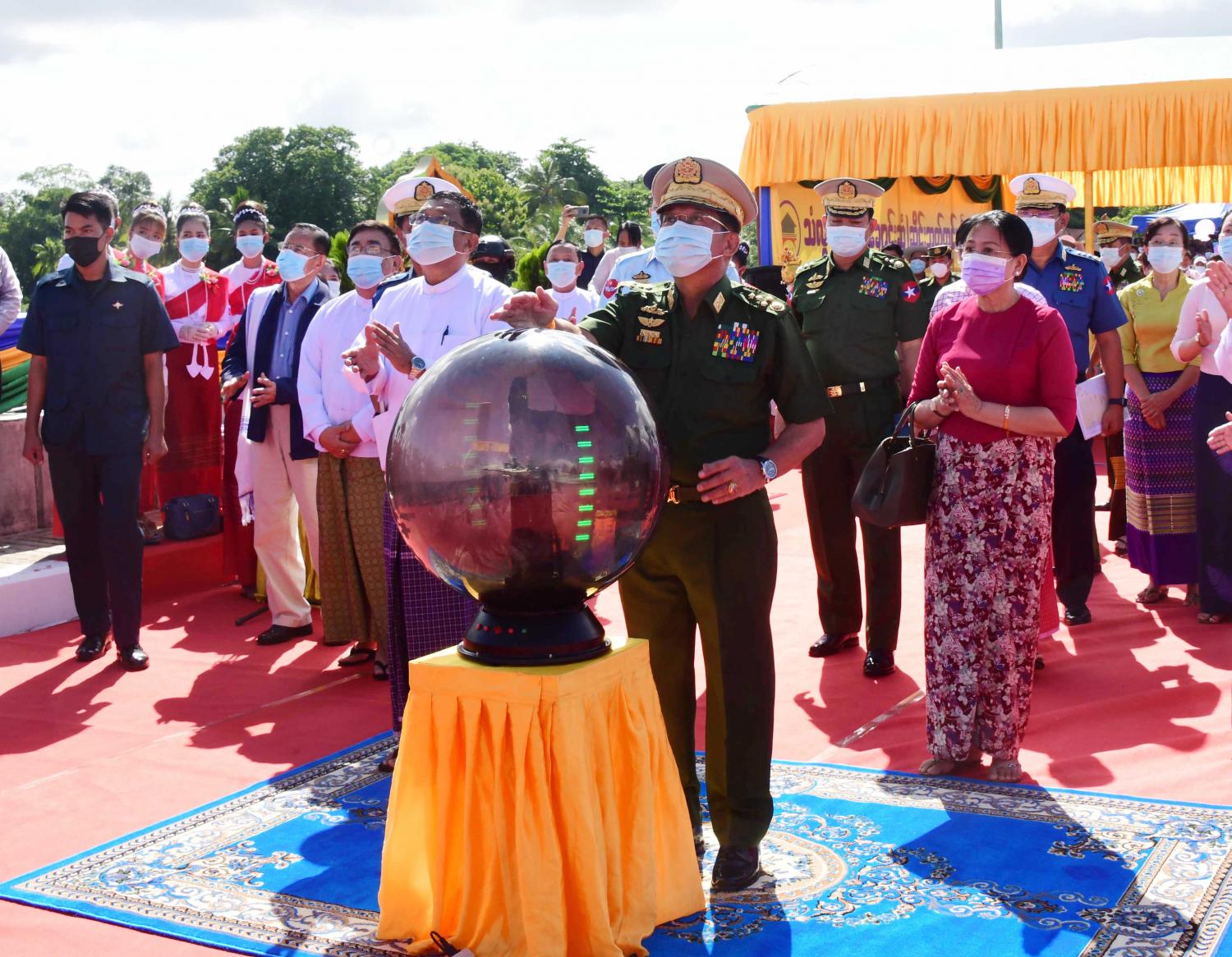 အဆိုပါ အခမ်းအနားသို့ နိုင်ငံတော်စီမံအုပ်ချုပ်ရေးကောင်စီဥက္ကဋ္ဌ၊ တပ်မတော် ကာကွယ်ရေးဦးစီးချုပ်နှင့် အတူ ဇနီးဒေါ်ကြူကြူလှ၊ ကောင်စီဝင်များဖြစ်ကြသည့် ဗိုလ်ချုပ်ကြီး တင်အောင်စန်း၊ ဗိုလ်ချုပ်ကြီး မောင်မောင်ကျော်နှင့် ဇနီး၊ ဒုတိယ ဗိုလ်ချုပ်ကြီး မိုးမြင့်ထွန်း၊  မန်းငြိမ်းမောင်၊ ဒေါက်တာ ဗညားအောင်မိုး၊ ကောင်စီ တွဲဖက်အတွင်းရေးမှူး ဒုတိယဗိုလ်ချုပ်ကြီး ရဲဝင်းဦး၊ ပြည်ထောင်စုဝန်ကြီးများ ဖြစ် ကြသည့် ဒေါက်တာ ညွန့်ဖေ၊ ဒေါက်တာ သက်ခိုင်ဝင်း၊ ဦးရွှေလေး၊ ကာကွယ်ရေး ဦးစီးချုပ်(ရေ) ဗိုလ်ချုပ်ကြီး မိုးအောင်နှင့် ဇနီး၊ ကာကွယ်ရေးဦးစီးချုပ်ရုံးမှ တပ်မတော် အရာရှိကြီးများ၊ မွန်ပြည်နယ်စီမံအုပ်ချုပ်ရေး ကောင်စီဥက္ကဋ္ဌ ဦးဇော်လင်းထွန်း၊ အရှေ့တောင်တိုင်းစစ်ဌာနချုပ် တိုင်းမှူး ဗိုလ်ချုပ် ကိုကိုမောင်၊ ပြည်နယ်စီမံအုပ်ချုပ်ရေး ကောင်စီအဖွဲ့ဝင်များ၊ ဌာနဆိုင်ရာ တာဝန်ရှိသူများနှင့် ဒေသခံတိုင်းရင်းသား ပြည်သူများ တက်ရောက်ကြသည်။