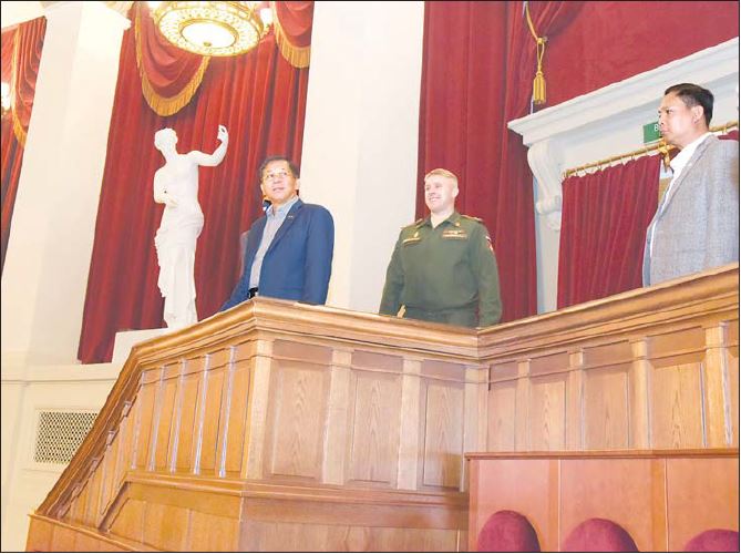 ယင်းနောက် ခေတ္တတည်းခိုမည့် Marriott Hotel အနီးရှိ ရှေးဟောင်းသမိုင်းဝင် Novosibirsk State Academic Opera and Ballet Theatre သို့ ရောက်ရှိ လေ့လာကြရာ ပြဇာတ်ရုံ အုပ်ချုပ်ရေးအဖွဲ့အကြံပေး Mr. Vroskly Valen Arkagievich က ပြဇာတ်ရုံ ကို ၁၉၃၁ ခုနှစ်တွင် စတင်ဆောက်လုပ်ခဲ့ပြီး ၁၉၄၅ ခုနှစ် မေလ ၁၂ နေ့တွင် ဖွင့်ပွဲပြုလုပ်ခဲ့သည့် အခြေအနေများ၊ ၁၉၄၁ ခုနှစ်တွင် ဖွင့်လှစ်ရန်စီစဉ်ထား ခဲ့သော်လည်း ဒုတိယကမ္ဘာစစ်ဖြစ်ပွားနေသည့်အတွက် ၁၉၄၅ ခုနှစ် မေလ ၉ ရက်နေ့ စစ်ကြီးပြီးဆုံးသည့်နောက်ပိုင်းတွင် ဖွင့်လှစ်နိုင်ခဲ့ခြင်းဖြစ်ပြီး ကမ္ဘာ့အကြီးဆုံး ပြဇာတ် ရုံများ အနက်တစ်ခုဖြစ်ကာ ရုရှားနိုင်ငံတွင် အကြီးဆုံးဖြစ်သည့် အခြေအနေများနှင့် ပြဇာတ်ရုံဆိုင်ရာ အချက်အလက်များအား လိုက်လံရှင်းလင်းပြသခဲ့ရာ နိုင်ငံတော် စီမံအုပ်ချုပ်ရေးကောင်စီဥက္ကဋ္ဌ၊ တပ်မတော်ကာကွယ်ရေးဦးစီးချုပ်က သိရှိလိုသည် များကို ပြန်လည်မေးမြန်းဆွေးနွေးခဲ့သည်။