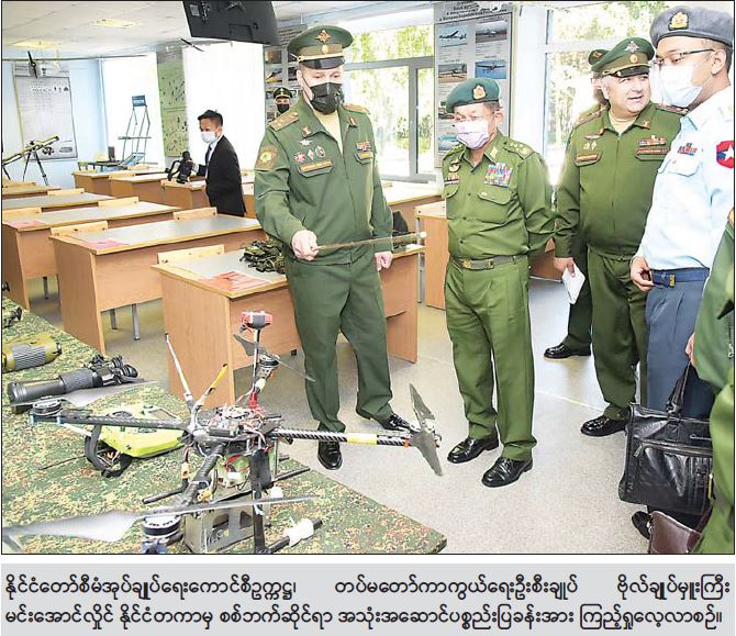 နိုင်ငံတော်စီမံ အုပ်ချုပ်ရေးကောင်စီဥက္ကဋ္ဌ၊ တပ်မတော်ကာကွယ်ရေးဦးစီးချုပ်နှင့် အဖွဲ့ဝင်များ သည် ယနေ့ဒေသစံတော်ချိန် နံနက်ပိုင်းတွင် Higher Military Command School သွားရောက် လေ့လာကြည့်ရှုကြရာ ကျောင်းအုပ်ကြီး Colonel Markochin Segeri Gregorivich နှင့် တာဝန်ရှိသူများက ကြိုဆိုနှုတ်ဆက်ကြပြီးနှုတ်ဆက်ကြသည်။ ယင်းနောက် နိုင်ငံတော်အတွက် အသက်စွန့်လွှတ်တာဝန် ထမ်းဆောင်ခဲ့ကြသည့် သူရဲကောင်းဆုတံဆိပ်ရရှိသူများကို ဂုဏ်ပြုထားသည့် သူရဲကောင်းရုပ်တုများအား ဂုဏ်ပြုပန်းခြင်းဖြင့် အလေးပြုပြီး လေ့လာ ကြည့်ရှုကြသည်။