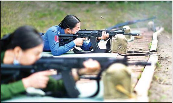 ဆက်လက်ပြီး Higher Military Command School အတွင်း မော်တော်ယာဉ်များဖြင့် လှည့်လည်ကြည့်ရှုကြပြီး လက်တွေ့ပစ်ခတ်မှု စက်ပစ်ကွင်းသို့ ရောက်ရှိလေ့လာကြည့်ရှု ကြသည်။ ထိုသို့လေ့လာစဉ် ကျောင်းအုပ်ကြီးနှင့် တာဝန်ရှိသူများ၊ သင်တန်းသားများက လက်နက်ငယ်နှင့် စနိုက်ပါ အမျိုးအစားမျိုးစုံတို့ကို လက်တွေ့ ရှင်းလင်းပစ်ခတ်ပြသခြင်းများ ပြုလုပ်ကြရာ နိုင်ငံတော်စီမံအုပ်ချုပ်ရေးကောင်စီဥက္ကဋ္ဌ၊ တပ်မတော်ကာကွယ်ရေး ဦးစီးချုပ်နှင့် တပ်မတော်အရာရှိကြီးများ၊ ကိုယ်စားလှယ်အဖွဲ့ဝင်များနှင့် အမျိုးသမီးအရာရှိများသည် ကိုယ်တိုင်ပါဝင်လက်တွေ့စမ်းသပ် ပစ်ခတ်ကြသည်။