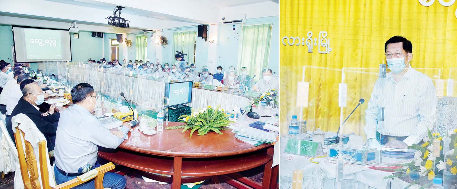 ကျေးလက်ဒေသဖွံ့ဖြိုးရေးအတွက် လမ်းပန်းဆက်သွယ်မှု ကောင်းမွန်ရေး၊ ရေရရှိရေး၊ မီးရရှိရေးတို့ကို အဓိကထားဆောင်ရွက် လျက်ရှိပြီး စိုက်ပျိုးမွေးမြူရေး လုပ်ငန်းများအတွက် ပစ္စည်းကိရိယာလိုအပ်ချက်၊ အရင်းအနှီးလိုအပ်ချက်များကို ကူညီဖြည့်ဆည်း ပေးသွားမည့် အခြေအနေများ၊ တစ်နိုင်တစ်ပိုင်လုပ်ငန်းများ လုပ်ဆောင်နိုင်စေရေး နည်းပညာနှင့် မတည်ငွေ ထုတ်ပေး သွားမည်ဖြစ်ပြီး သမဝါယမ အသင်းများ စနစ်တကျဖွဲ့စည်းရန် လိုအပ်သည့် အခြေအနေများ၊ ရှမ်းပြည်နယ်သည် နယ်စပ်ထိစပ်မှု နယ်နိမိတ်ရှည်လျားသည့်အတွက် ဒေသတွင်း သယံဇာတများကို ပြင်ပသို့ တရားမဝင်ထုတ်လုပ်တင်ပို့မှု မရှိစေရေး ထိန်းသိမ်း ဆောင်ရွက်ရန်လိုအပ်သည့်  အခြေအနေများ၊ ကျန်းမာရေးဆိုင်ရာ တင်ပြချက်များနှင့် ပတ်သက်၍ ကျန်းမာရေးဝန်ထမ်းနှင့် ဆေးပစ္စည်းလိုအပ်ချက်များကို ဖြည့်ဆည်းဆောင်ရွက် ပေးမည့် အခြေအနေများနှင့် ဆေးရုံများဖွဲ့စည်းပုံတိုးချဲ့ရေးနှင့် ပတ်သက်၍ မြေပြင်လိုအပ်ချက်ကို စိစစ်ဆောင်ရွက်သွားမည့် အခြေအနေများ၊ နိုင်ငံတော်စီမံအုပ်ချုပ်ရေး ကောင်စီဥက္ကဋ္ဌ၊ နိုင်ငံတော် ဝန်ကြီးချုပ်၏ လမ်းညွန်ချက်နှင့်အညီ တစ်မျိုးသားလုံး၏ အားကစား အဆင့်မြှင့် တင်ရေးလုပ်ငန်းများကို ဆောင်ရွက်လျက် ရှိသည်နှင့်အညီ ရှမ်းပြည်နယ်အတွင်း လိုအပ်လျက်ရှိသည့် အားကစားကွင်း အဆင့်မြှင့်တင်ခြင်းလုပ်ငန်းများ ဆောင်ရွက်ပေး သွားမည်ဖြစ်ပြီး နိုင်ငံ့ဂုဏ်ဆောင်အားကစားသမားများ ပေါ်ထွက်လာရေး ကြိုးပမ်းဆောင်ရွက်လျက်ရှိသည့် အခြေအနေများနှင့် ပတ်သက်၍ အသီးသီးပြန်လည် ဆွေးနွေးခဲ့ကြသည်။