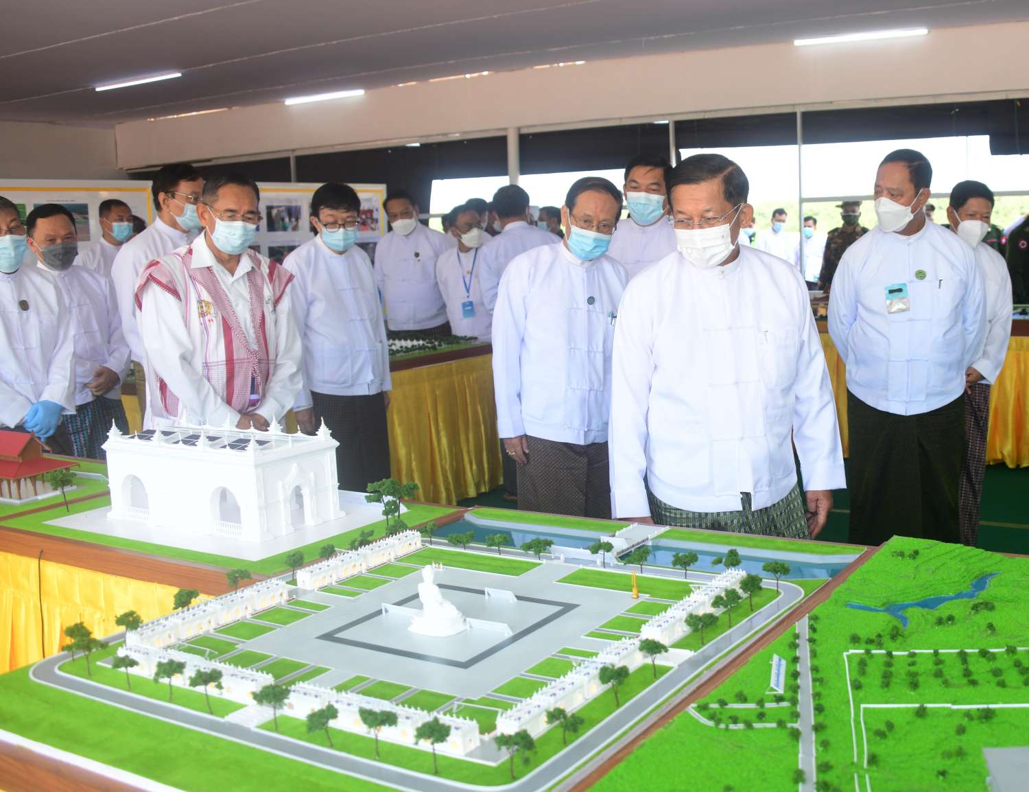 ယင်းနာက် နိုင်ငံတော်စီမံအုပ်ချုပ်ရေးကောင်စီဥက္ကဋ္ဌ နိုင်ငံတော်ဝန်ကြီးချုပ် နှင့်အခမ်းအနား တက်ရောက်လာကြသူများသည် မာရဝိဇယကျောက်ဆစ်ဗုဒ္ဓရုပ်ပွား တော်မြတ်ကြီးတည်ထား ကိုးကွယ်မည့် ပုံစံအတိုင်းပြုလုပ်ပုံဖော်ထားသည့် ဥယျာဉ်တော် အကွက်ချပုံစံငယ်များ၊ ရုပ်ပွားတော်ကြီးပုံစံငယ်များ၊ ပိဋကတ်ကျောက်စာရုံနှင့် ကျောက်စာနမူနာများ၊ ရုပ်ပွားတော်မြတ်ကြီး၏ ပုလ္လင်တော်အပိုင်း ၁ နှင့် ၂ တို့အား နေရာချထားမှုနှင့် ဆင်းတုတော်အပိုင်း ၁ နှင့် ၄ တို့အား CNC Machine များဖြင့် ထုဆစ်နေမှုအခြေအနေများအား လှည့်လည်ကြည့်ရှုခဲ့ကြောင်း သတင်းရရှိသည်။