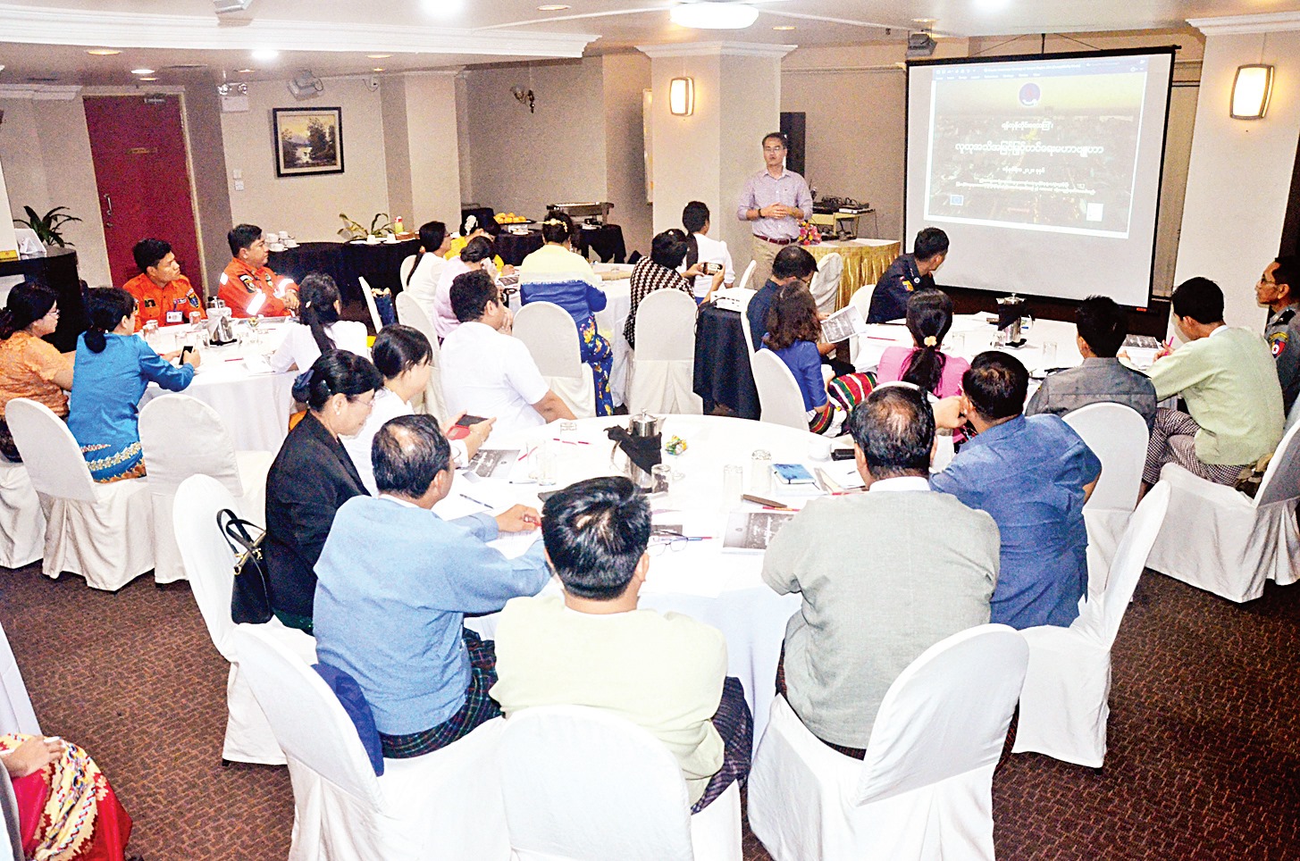 ရန်ကုန်တိုင်းဒေသကြီးအတွင်း ဘေးအန္တရာယ်ဆိုင်ရာ လူထုအသိပညာ မြှင့်တင်မှုမဟာဗျူဟာ နှင့်စပ်လျဉ်း၍ (ပထမအကြိမ်) အလုပ်ရုံဆွေးနွေးပွဲမှ ရရှိထားသော အချက်အလက်များ အတည်ပြုချက်ရယူခြင်းနှင့် ရှေ့လုပ်ငန်းစဉ် များဆွေးနွေးသည့် အလုပ်ရုံဆွေးနွေးပွဲကို ယနေ့နံနက်ပိုင်းက ရန်ကုန်မြို့ရှိ Summit Park View Hotel ၌ ကျင်းပသည်။