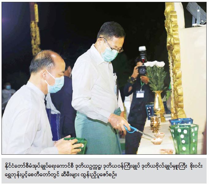 တန်ဆောင်တိုင်မီးထွန်းတော်များကို တိုင်းဒေသကြီးနှင့် ပြည်နယ်အသီးသီးရှိ ဘုရား၊ စေတီ၊ ပုထိုးများ၌ ကိုဗစ်- ၁၉ စည်းမျဉ်း၊ စည်းကမ်းများနှင့်အညီ ကျင်းပပြုလုပ်ကြပြီး နေပြည်တော်ကောင်စီနယ်မြေ၊ ဇေယျာသီရိမြို့နယ်အတွင်းရှိ ရွှေဘုန်းပွင့် စေတီတော် မြတ်ကြီးတွင် ဆီမီးတစ်ထောင် ထွန်းညှိပူဇော်ပွဲ ကျင်းပပြုလုပ်ရာ နိုင်ငံတော်စီမံအုပ်ချုပ်ရေး ကောင်စီဉက္ကဋ္ဌ၊ နိုင်ငံတော် ဝန်ကြီးချုပ် ဗိုလ်ချုပ်မှူးကြီးမင်းအောင်လှိုင်နှင့်ဇနီး ဒေါ်ကြူကြူလှ၊ နိုင်ငံတော် စီမံအုပ်ချုပ်ရေးကောင်စီ ဒုတိယဉက္ကဋ္ဌ၊ ဒုတိယ ဝန်ကြီးချုပ် ဒုတိယဗိုလ်ချုပ်မှူးကြီး စိုးဝင်းနှင့် ဇနီး၊ အဖွဲ့ဝင်များ၊ တပ်မတော် (ကြည်း၊ ရေ၊ လေ) မိသားစုများက တက်ရောက် မီးထွန်းညှိ ပူဇော်ကြသည်။